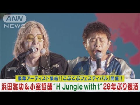 音楽フェス「ごぶごぶフェスティバル」は、5月11日と12日の2日間開催され、2日目のこの日、大トリで浜田雅功さんと小室哲哉さんの2人が登場!大興奮に包まれた会場で、2人がタッグを組んで結成した音楽ユニット「H Jungle with t」の「GOING GOING HOME」を29年ぶりに披露した。さらに、累計230万枚を売り上げた大ヒット曲「WOW WAR TONIGHT~時には起こせよムーヴメント」を熱唱!ラストは、この日の出演者をステージに呼び寄せ全員で「WOW WAR TONIGHT~時には起こせよムーヴメント」大合唱し、雨の中駆けつけたファンを熱狂させた。