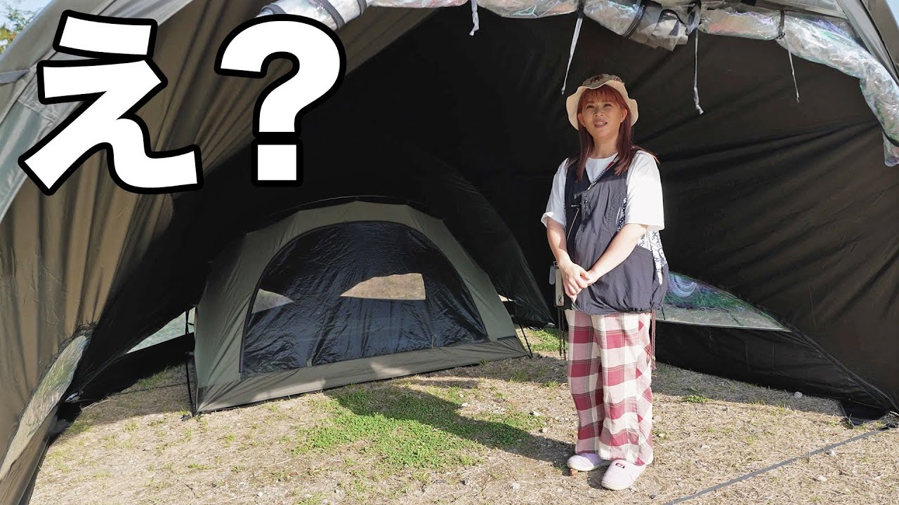 見たことない形のタープ?にカンガルースタイルで設営
