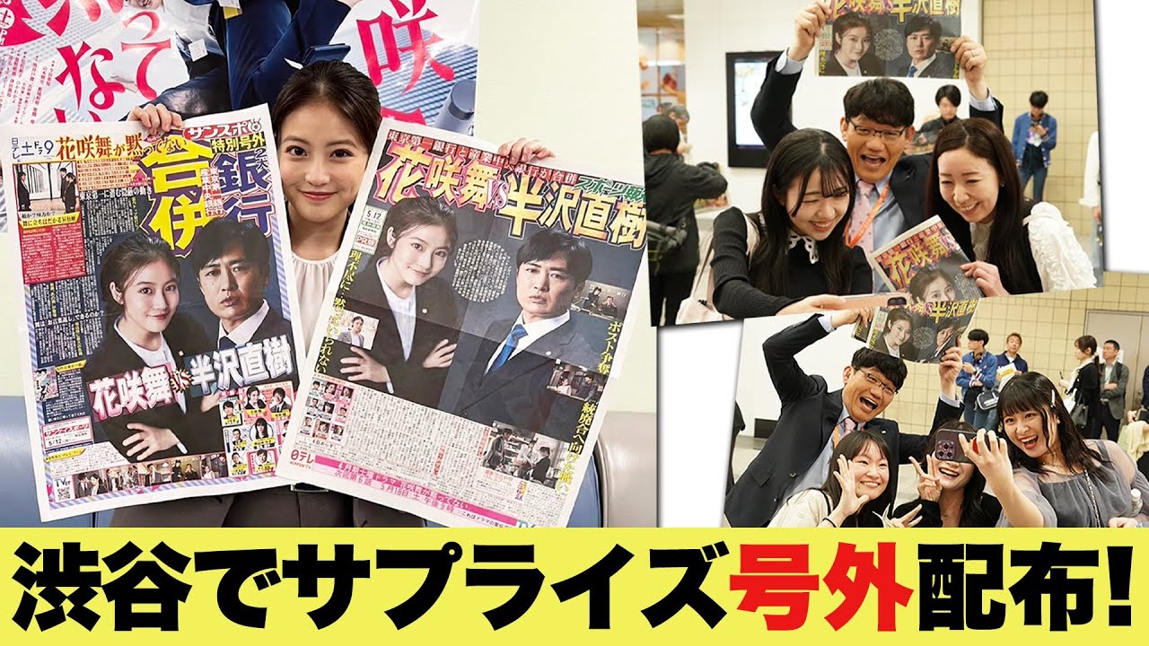 半沢直樹が登場!号外を芝崎次長役・飯尾和樹(ずん)が渋谷でサプライズ配布