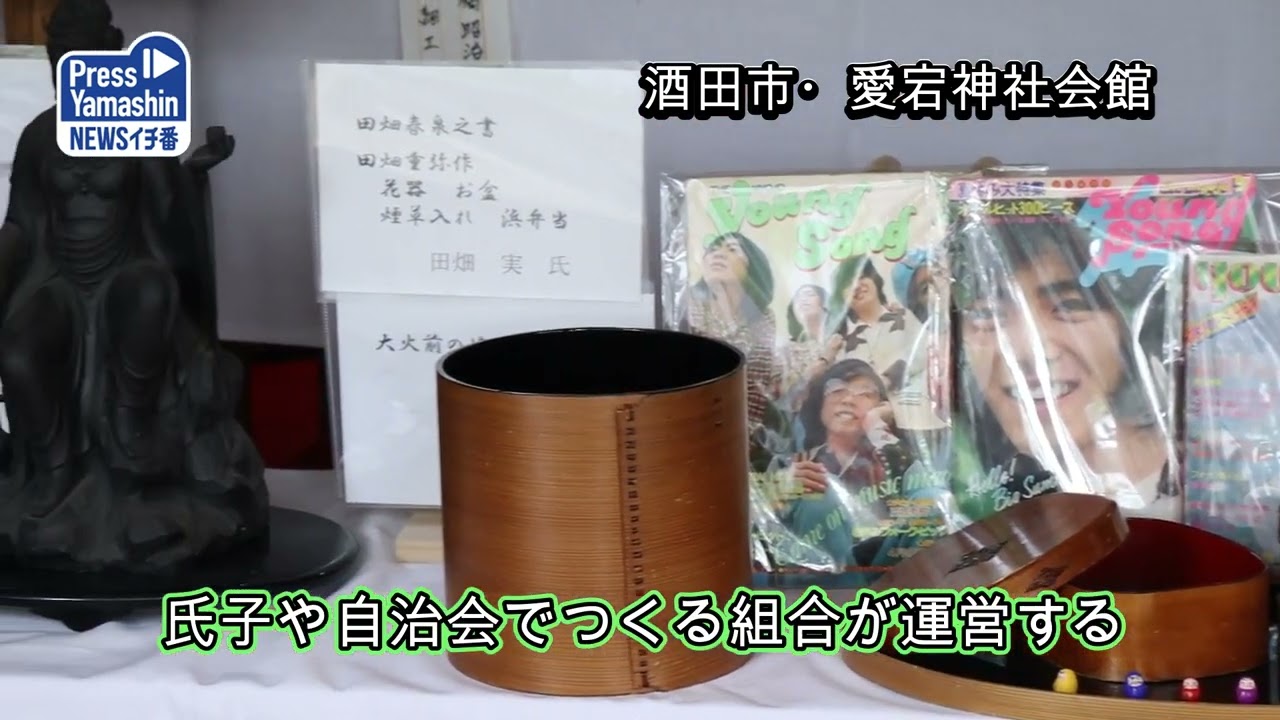 酒田市で行われる酒田まつり(19~21日)を前に、市内の2カ所で15日、神を迎え入れ、もてなす「神宿(とや)開き」が行われた。地域や家庭で大切にされている“宝物”を上(かみ)・下(しも)それぞれの神宿に飾っている。21日まで。