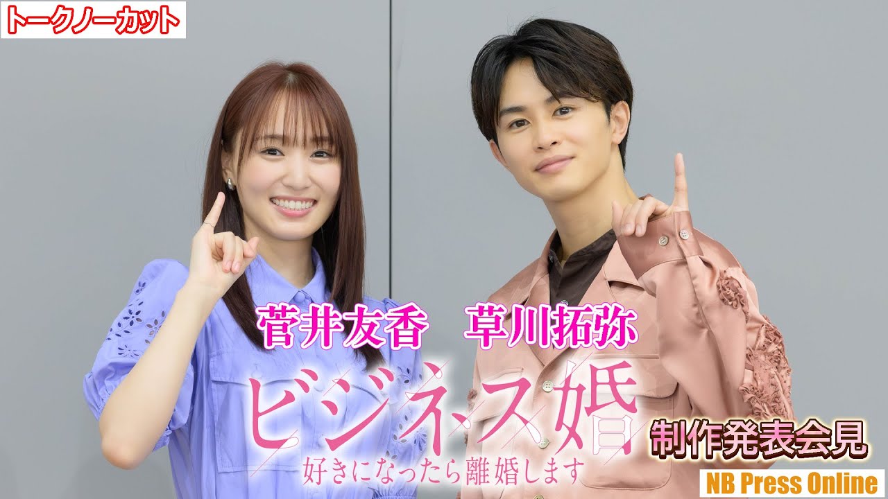 2024年5月某日、都内にて、ドラマフィル『ビジネス婚―好きになったら離婚します―』制作発表会見が行われ、W主演の菅井友香、草川拓弥が登壇。本作の撮影エピソードや見どころについて語った。