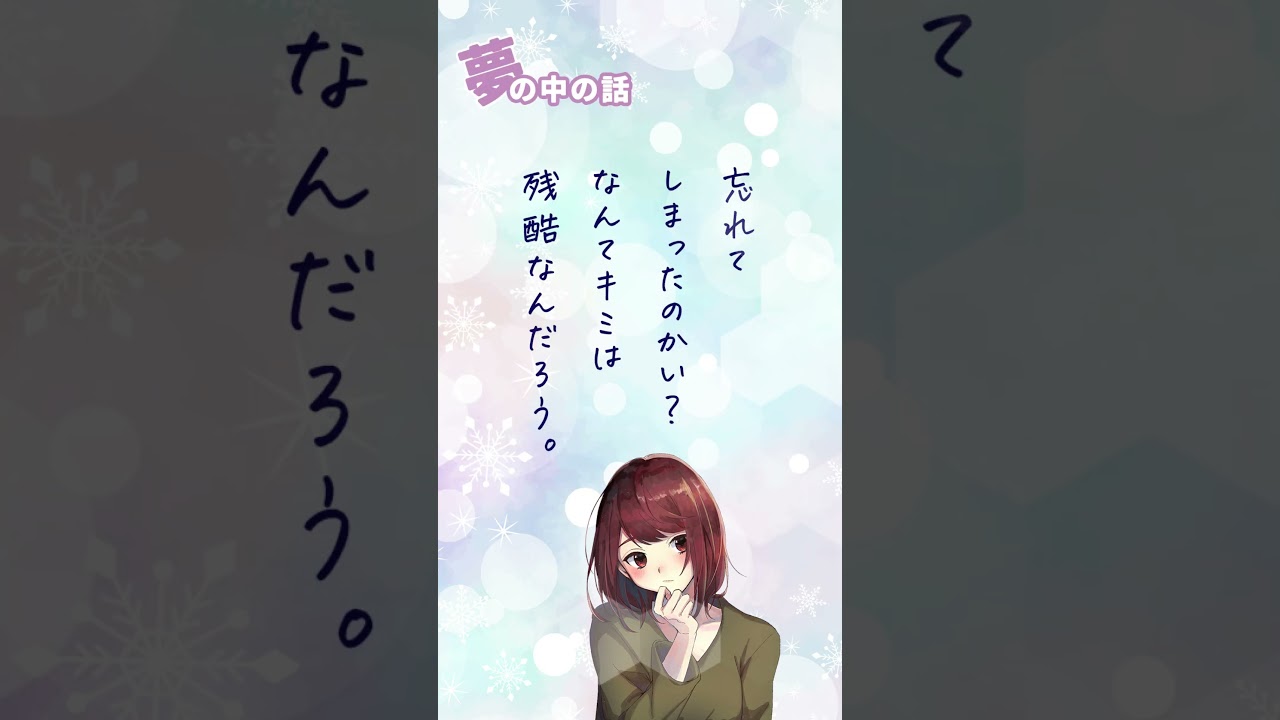 [音楽] あなたは 誰と君は不思議そうに首を かげる忘れてしまったのか いなんて君は残酷なん だろうあんなに好きと言ってくれたの に夢の中 [音楽] で