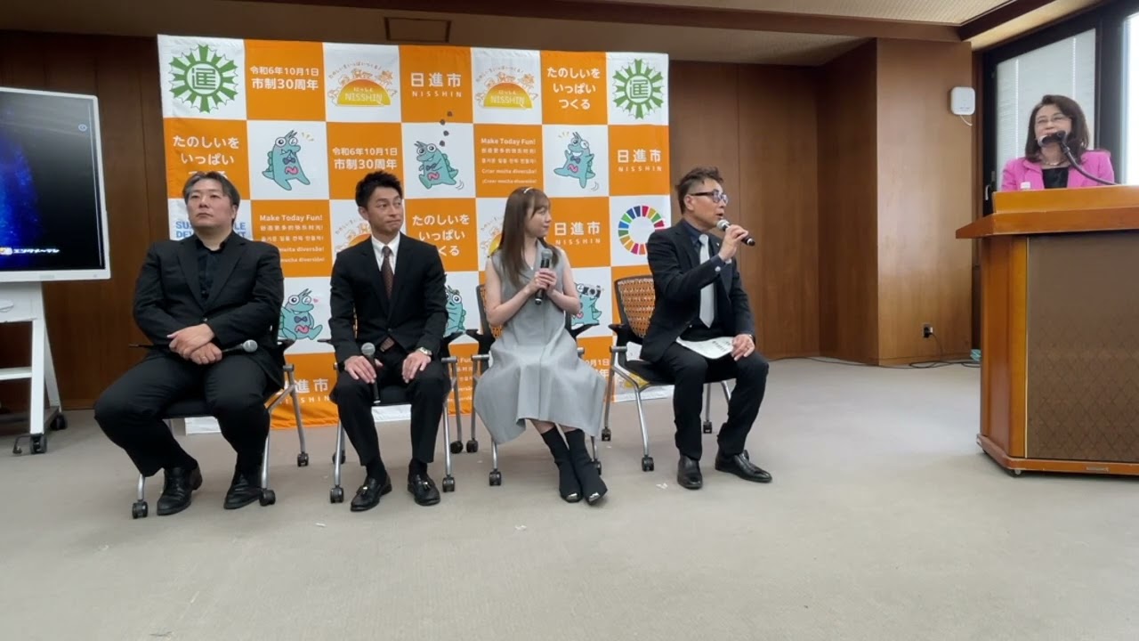 [拍手] [音楽] [拍手] え本日は映画男神制作発表会見にお越し いただきまして誠にありがとうございます え私は本作のプロデューサーで平成 プロジェクト代表の増田ゆみ子と申します 本日の進行をさせていただきますど監督 からご挨拶いただきますええ映画男神の 監督の上とりますえっと今日は皆さん 集まってくださってありがとうございます よろしくお願いし ますえそれで終りですか後で色々話しから 大丈夫あはいどはいえ皆様こんにちはえ 映画男神で話題勇気役を演じさせて いただきます遠藤ゆですえ本日はマスコミ の皆様えお忙しい中えお越しくださって ことにありがとうございますえ短い時間で はございますがよろしくお願いいたし ますはい山下た愛子役を演じさせて いただきます田明と申しますえっと私は 愛知県出身なのですごく子供の頃から 馴染みのある日のこの地に今日こうして 素敵な形で来ることができてとても嬉しく 思っています今日はよろしくお願いし ますえ妊娠市長の近藤博樹と申しますま あのこういった会見に私なんかがですね あの一生ご一緒させていただくのはあの ちょっと違うのかなという風に思いつつも あの妊娠士としてもしっかりこの映画の こと応援をさせていただきたいなえそして あの今年はですね市になって30周年と いうことでえできればあの市民の皆さんも この映画に色々と関わっていただきながら この街をそしてこの映画を盛り上げて いただきたいという風に思ってますどうぞ よろしくお願いしますえでは監督この映画 のえ内容簡単にはいお知らえ内容はですね えっと乞食で描かれている日本神話以前の いやその以前にも神様がいてですね縄文 時代からいる神様をテーマにした映画です えっとま映画の設定ではな名前がもう残っ てない え神様通称男神とえ呼んでましてえそこの え儀式にですね巻き込まれるえ家族の映画 ということになっておりますはいはいでえ 監督からですねこの主演にえ遠藤さんそれ から菅田さんはいキにされましたけどその 役所 え遠藤さんは主人公の行き役をやって くださってま遠藤さんにお願いしたのは ですねあのまエドさん自体がま自分ま もちろん知っててえっとまなんか地に足を ついたの延期をされる方だなとでまえ脚本 の秒間と秒間をきちんと読んでえっと役に 挑まれる方だなという風に思ってましてま この映画あのファンタジーの要素がすごく 強いもんですからなんかそういうものを ですねあの説得力あるようにするにはです ねちょっと浮ついた演技だとなかなか こう馴染まないとなんでなんかそういう ちょっと難しいことではあるんですけども なんかそういうことがあ演技でえ体現 できる 方という風に探してて遠藤さんにお願いし てでま心よくあの引き受けてくださって 非常に安心してります あと菅田さんはですねあもちょあのこのお 綺麗な方なんですけども実際演じて いただくのはですね結構あのガ系の強い あの泥臭いあのことをやるそのなんか ショベルカーの運転手みたいな あ役ところでま普段の津田さん の性格とはちょっと違うかもしれません けどもそれがまたなんかギャップとして あの面白いんじゃないかとあとまあの こちら名古屋西市がま地元っていうことも あるてまなんかそういう場所でその撮影 するとなったらやっぱり地元の愛がある方 にお願いした方が作品としてはより良く なるんじゃないかと思いましてえお願いし ましたはいはいでは遠藤さんスタさんに あの意気込みなど意気込みですかはい そそうやをです感想などもう今犬監督から お話があったようにもうついた演技をし ないようにね井上さん監督のもう期待 裏切らないようにしっかりとあの撮影に 挑みたいなと思っている所存なんです けれどもまず最初あの台本読んだ時まず 題名ですよね男神て男神ってんだろうって まずそこが多分お客さんもすごく気になる ところだと思うんですけどもままさに 先ほど監督からもお話があったように えっとまあ 世界に立ちちできる日本映画になる要素が たくさんあるなとえ今台本読んでえ僕自身 本当にワクワクしていてえそしてえ 素晴らしいロケーションもう今から本当 ロケハンのそのロケッの写真とかも見せて いただいたりしてすごく緑豊かなあの非常 に素敵なロケーションで撮影でき るっていうのもとてもワクワクしてます あとはなんか撮影中に美味しいものとかも 食べれたらいいななんてえ思いながらえ 楽しくえ撮影したいと思いますので是非男 の応援のほどよろしくお願いいたし ますはい田さんよろしくお願いしますはい ありがとうございますえっと最初お話を いただいた時にあの日誌で撮影しようと 思っているっていう風に言っていただいた 時はあ近いじゃんっていうのがまずすごく 嬉しくてであの実はあの公表してなかった ことなんですけど私あの出生が日進えなん ですよ生まれが出身は名古屋市でていう風 に言ってるんですけど生まれた病院が日進 の方にあり