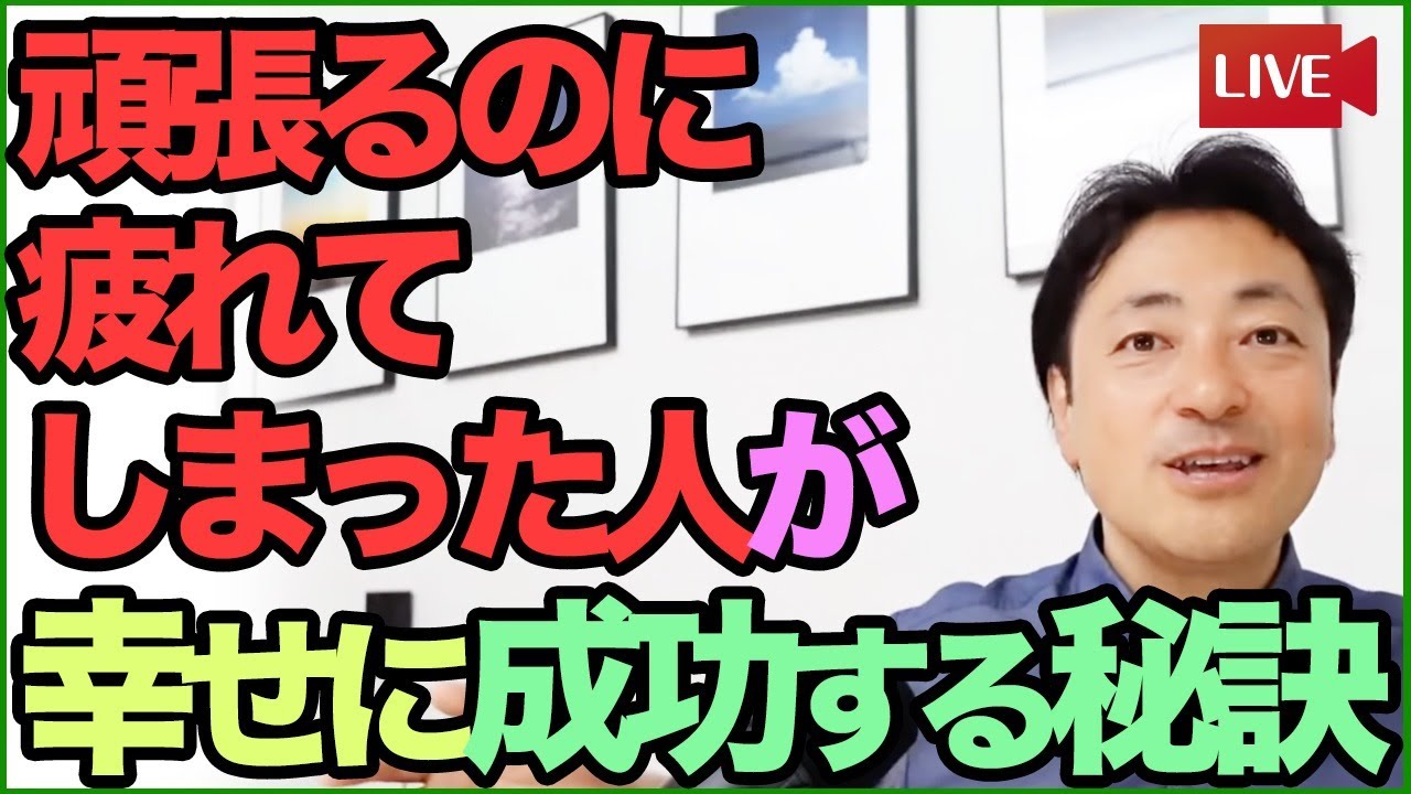 本田高一の知ってるだけでハッピーライフ 今日のテーマですけれども頑張るのに疲れ てしまった人が幸せに成功する秘訣こちら をねやっていきたいなっていう風に思って いますまあ今5月がねえっと中盤を過ぎ まして疲れたな頑張りすぎたなって人もね 多いんじゃないのかなと思いますま とにかくその頑張るのに疲れたなっていう 風にねえまそういう風にキャッチしたえ これねに成功するサインだったりしますま ちょっと何言ってるのか分からないですよ ね頑張るのが疲れるこれ幸せに成功する サインって言われてもねま何のことだろう ていう風に思っちゃうかもしれないんです けれどもまずですね頑張るのが疲れ るっていうのはSOSのサインですねあの 頑張るのが疲れるっていうのはもうそれ 以上頑張れないって意味だったりしんど いって意味なのでまこれは間違いなく心や 体がねSOSを出しているサインなんです ねでまずこのサインを上手に理解して方を 変えていくと幸せに成功するっていう風に 思っています周りの友人知人見てての僕は すごく思うんですけれどもえこのサインを ね理解しないで無理に突っ走ってしまうと やっぱり大きな痛い目に合うことが多いん ですけれどもまこれをねうまく気がついて できるだけその傷口が広がらないうちって 言うんですかね疲れが爆発する前に気が ついてくるとえ上手にね人生うまくこう 動かすことがねできるんじゃないのかなと 思いますえじゃあ一体どういう風にね生き 方を変えて行けばいいのかまその前に幸せ に成功してる人たち僕の周りにいっぱい いるんですけれどもま彼らを見ていて色々 気づいたその特徴っていうのをね紹介して いきますでその特徴にえっと合わせた 近寄らせた生き方をしていくとま当然 ながらね幸せに成功するんですけれどもま その帰るにあたってこの疲れしんどいなね あのもう頑張るのが疲れたなっていうのは その変えるねいいタイミングだったりする ので決してね悲観的にに思わずに最後まで 見てもらえるとなるほどそういうことか じゃあ自分もね幸せな生き方にえ幸せに 成功にねする方にシフトできるなっていう 風にまそういう感触を持ってもらえるん じゃないのかなっていう風に思いますので 楽しみながらリラックスしながら見て くださいねはいえ幸せに成功してる人って ね自分のエネルギー量を知ってるんですね そのエネルギーの中で上手に生きています エネルギー量っていうのは何かって言うと このぐらいまでだったら頑張れるよねって いう その自分の頑張れるキャパですねえ容量を よく知っているっていうことなんですよね 大体自分はこれぐらいまでだったら力 いっぱいいけるけどそれを超えるとね しんどいなっていう風にえ思うそれがね ちゃんと把握してるんですねま全然余談な んですけれどもま僕趣味で自転車をやるん ですがえ自転車でねまあのこう トレーニングしていると大体自分の体力が どの辺でバテるのかっていうのが結構ね 数値化するんですよねでで賢いその自転車 用のコンピューターにえそういうのを感じ させると大体このぐらいであの君は体力が 尽きるぞっていうのがなんかね表示される んですよそれが結構ね正確なんですよね 本当にその数値通りにパタッてなるのでま 自分で自転車を走る時にまそのペース配分 がねすごくこう理解できてくるんですよね ま便利な世の中ですよね自分がこのぐらい でバテるかバテないかっていうのがスーツ 化して分かるんですけれどもまなかなかね 自分が自転車以外でねどのぐらいまで 頑張れて頑張れないのかっていうのはま なかなか数値化しにくいかなとは思うん ですがまそれでもね人それぞれまこの ぐらいだったら大丈夫だよっていう容量が えありますで幸せに成功してる人ってその 容量を自分はこのぐらいまでエネルギーは 大丈夫だっていうのをどっかでね把握して いるんですよねはいでまこれをうまく把握 してないと無理をしてしまいますま悲しい けどね人って年々元気やもう失います体力 気力がね失ってきますま僕もそれを上がん かのようにえトレーニングとかしていてま ある程度キープはできるんですけれどもね まそれでも年々年々人間はね誰しも体力 気力っていうのが残念ながら落ちてきます え僕は今51歳なんですけれども当然 ながら大谷翔平さんのようなね若さや エネルギーないですよねまあったらすごい ですよねあったらとんでもなくすごいん ですけどまやっぱりないよねまそうすると 自分の使える体力気力くってま彼よりも 全然全然え小さいレベルですよねっていう のがまこれはねもう誰しもねまそりゃそう だろうっていう風に思うんじゃないのかな と思いますところがえ誰しもね若い頃って ありますえ体力気力がね今よりももっと あった時代ってあると思うんですけれども ま若い時にね無理をしてえ成功した経験 ってね誰しもあるんじゃないのかなと思い ます例えばえ徹夜でね試験勉強一夜付けで も何でも