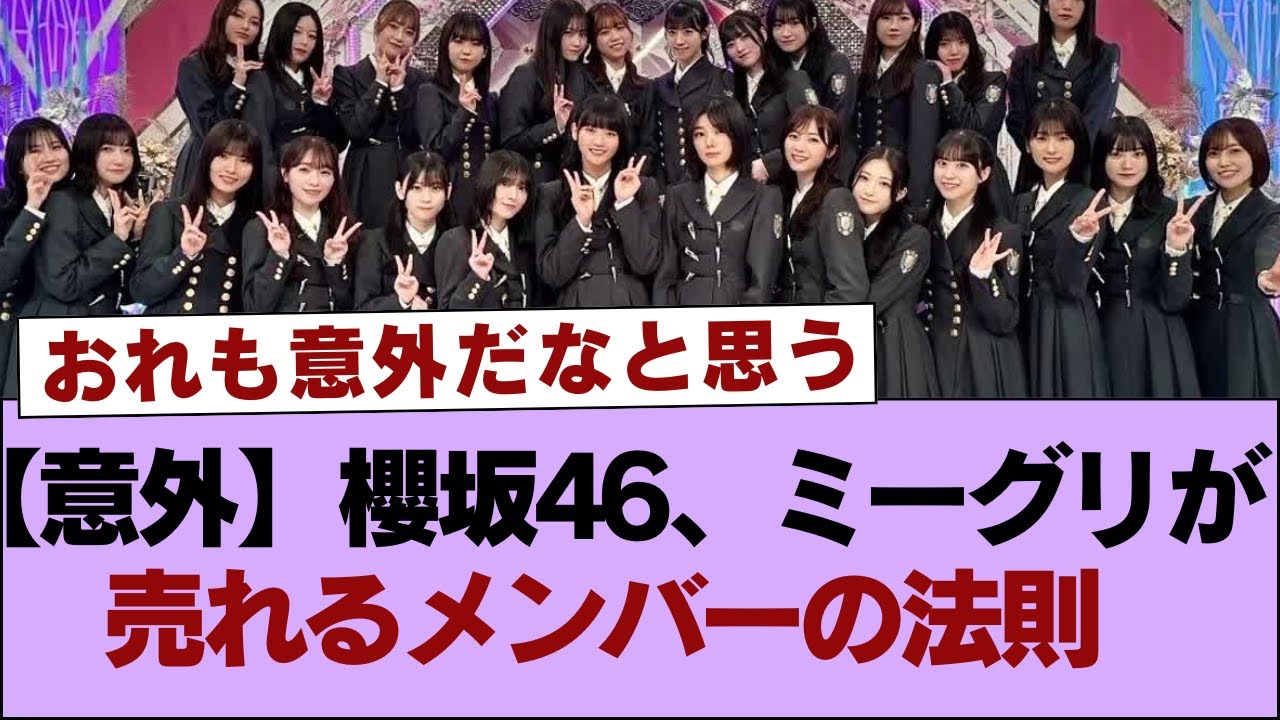[音楽] 桜坂46ミブリが売れるメンバーの 法則山下はともかく村山まのが抜けてきた のは意外というかちょっとネジがずれてい て影の方が好まれるってのは難しい フループだなと思う声張って頑張ろうと すればするほど沈む可能性があるってのは 何とも言えない気持ちになるキャラの問題 じゃなくてライブでかっこいいかどうかだ ぞ俺も意外だなと思う山下も含めて不器用 だり支えてあげなきゃって思われる人に ファンがつくグループなんだろうねCは こうすればおオタが喜ぶんだろうお研究 すらしていそうな貫禄があってむしろ あえて武器要さを出しているような雰囲気 すらあるんだよな一見意外だけど紐解くと 納得でもある初期人気上位の谷口小島中島 のようないわゆる正当派が伸び悩むのは なんかこのグループっぽくて難しいなって 思うま3期みんな人気なのは間違いないが 中波がこれだけ伸びてる時点でこの考察破 してるだろそもそも他のメンバーだって 完売速度が相当上がってるし沈むとか 伸び悩むとか言ってるのが間違ってる結局 顔で選んでるだけな気もするけどグループ の傾向としてみるにはサンプルが少ないと いうか2期生には当てはまってないからな 3規生の傾向としてみるにはいいけど山ま のはやっぱりライブでのパフォーマンスが 要因だろ新山もバックスライブあたりで 人気が急上昇したと思うしちゃんはトーク 取るとぬる理由が分かるなんかつめない 魅力があるでもまあみんな伸びていきそう だよ 正直てんちゃんとほが売れてるのが説明 つかんよハブちゃんゆいポオが卒せずに ミーみよに流れたりしてそうエイスで一気 に増えてたから人気になる要因としては1 番は顔2番は上からのされ具合3番は本人 のキャラの順で重要だと思うわこの グループは隠れきゃ感じ不器用で誤解され やすい雰囲気をうまく演出できるメンバー 型のグループより人気出やすい印象森田に はその法則は一切適用しないが頼りなくて 放っておけないみたいなのが受けそうな 傾向あるねノギとかとは真逆イメージ影 っぽいメンバーが好まれるのは坂道お全般 の傾向でしの坂は押しかけ桜はもう少し掘 したタイプがすかれるのはあると思うが 毎週楽しいチョコサ桜坂46メンバー プライベート9位会も神会が確定 ありがとうございます楽しみですおろし こんなからしか得られない栄養素がこすり にこすり続ける井のまりパズドラささそこ サチョコサおいおいおいおい見る前から おもろい確定なのおもろいいのの話を聞い て笑ってるユズがいいよねという視点井マ 最新情報ってなんだよ進展したのか ライバル登場したのか幸いわが心変わりし たのかひひにいのマリの情報でてくんの 好きマモとキラのキラーパス井野まり新着 情報早坂で今1番ホットな話題ですからね 楽しみですこれのために今日は起きとか ないと井まり呼び公式になっちゃったよ MCキラのキラーパスありさちゃんの何 やらおな一面もあり楽しみがすぎる公式が わざわざた作って押してきてる [音楽]