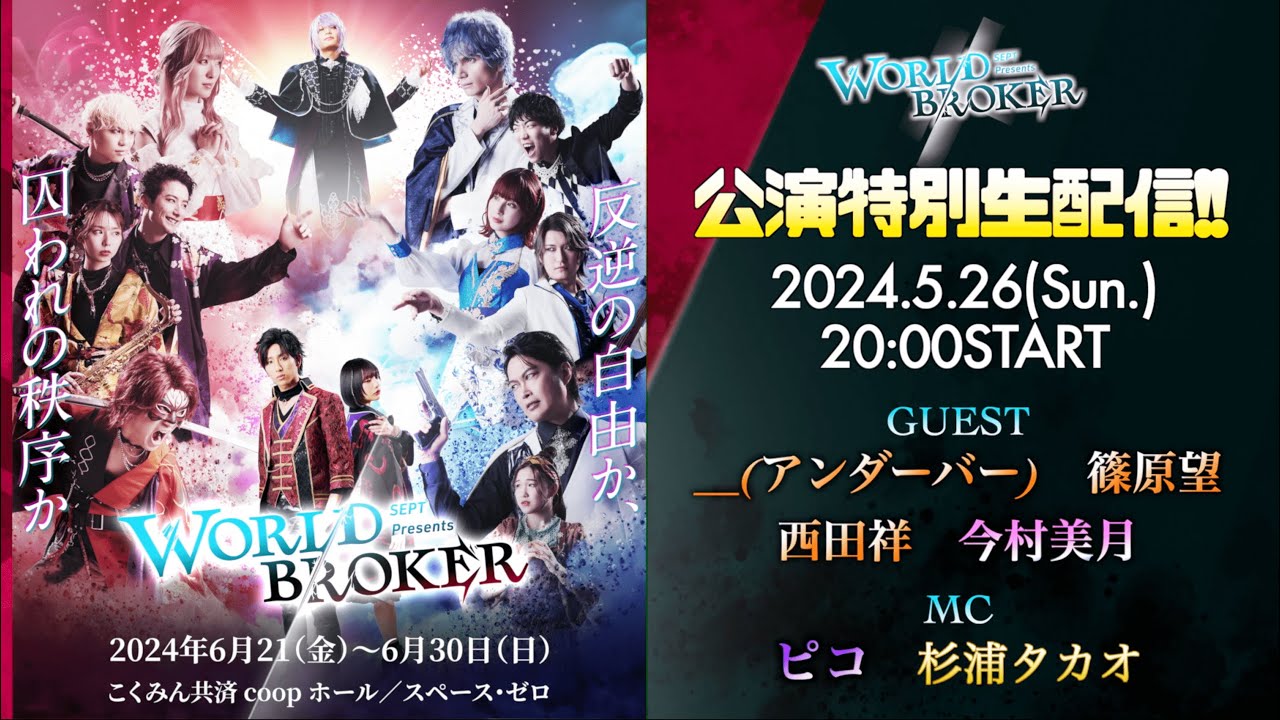 稽古も始まり走り始めたWORLDBROKER、公演に向けキャストをお招きしSEPT神勢が物語と共に生配信で深掘りします!ゲストは__( アンダーバー)さん、篠原望さん、西田祥さん!