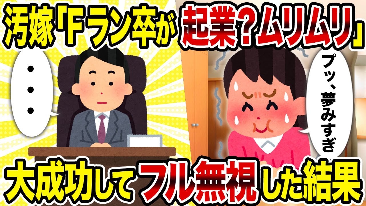 【2ch修羅場スレ】汚嫁「Fラン卒が起業?ムリムリ」→大成功してフル無視した結果