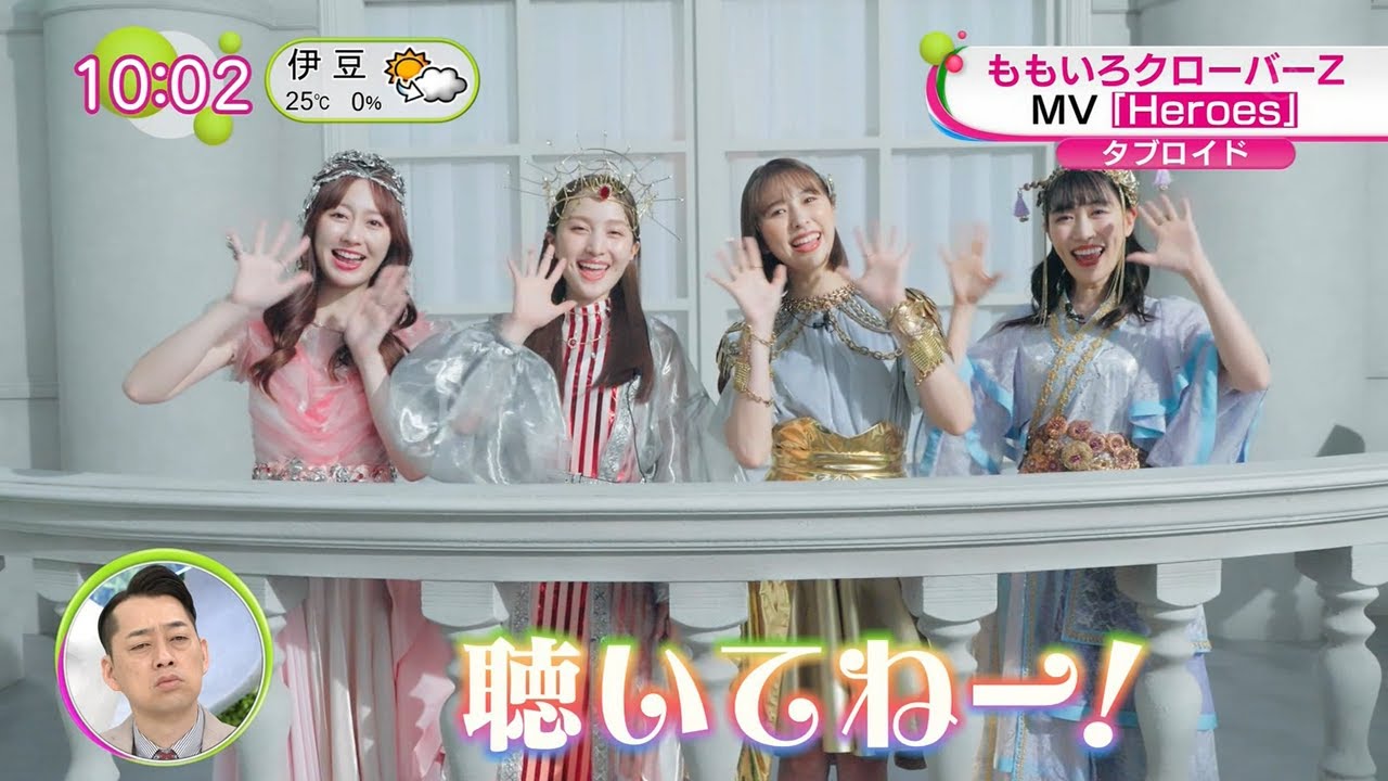 来月発売される桃色クローバーセットの 最新アルバム収録曲ヒーローズの ミュージックビデオが公開されまし たとっても世界観こうなんだろう壮大で ファンタジーなあの作品となっております アルバムの物語の始まりを表現した背中を 押してくれるような曲になっているので 是非たくさんの方に聞いていただけたら 嬉しいなと思います 始め1影に 揺れるを知りたくて 君なる景色 踏み出すおはようございますおございます 今朝のエンタニュースを一に紹介続いては こちらリトルモクも登場壮大で見応え たっぷり です桃色クローバーZの新曲ヒーローズの ミュージックビデオ初公開ファンタジック の作品に仕上がっていますちょっとどんな 感じになるか全くパックだしここもほの 一部ってことは全体がどうなるのか 楽しみ胸がるどこまでも続いてくロあに光 が 日けたんだ完子供たちがねどんな感じで 撮影してくれるのか私たちのちっちゃい頃 役の子たちが出てきてくれるんですよね とっても壮大でファンタジーな作品となっ ておりますアションも入ってくるそう折が くさなMになり 光るのでもて は来 ムリー [音楽] 曲のミージックちゃんもよく知るあの グループ私たちアイドル末ヒロイン クローバ [音楽] アルムに録ヒローのミデがされましなんと 私たちのちっちゃい頃役の子たちが出てき てくくれるんですよね一緒に撮影はして ないのでこれがどんな感じで私たちのの 部分を撮影してくれてるのかとっても 楽しみですも今年で15年なん だっなった ねいうでがミュージックビデオたくさんお 届けしましたということで今日のどっちは ここまでまたねデイ でそうかもくももう15周年になるんです そうですよねベテランさんですよベテラン さんですよ僕だって山さんに当時15年 ぐらい前134年前にあのおすすめの相手 どなっですかって聞いた時桃色クバZまだ そのモクローバーでしたねそうそうそう そうで言われて何言ってんだろうと思っ たら覚えてますもんその時はまだだって誰 も知らなそれが今やもう本当ねがそうです よねすいませんなんかそういうこと言うと 今のファンの人怒られそうなんだよ な僕は教えていただいたなんかさこの後 11時頃からは視聴者の皆さんからの声に 答える最後はこちらの グループ私たちアイドル週末ヒロイン クローバ去年決15周年を迎えた桃 クローバーの新曲ヒーローズ にく胸が踊るどこまでも続いてく メロディヒローとなった桃が日々悩みや 苦しみを感じている人に寄り添って背中を 押してくれるような楽曲となって いる世界観こうなんだろ壮大で ファンタジーなあの作品となっております はいはい来てね