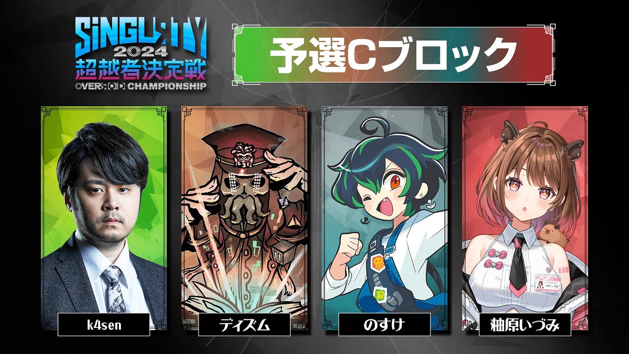 はい えっとすはいました しはいえっと最初の挨拶ぶっ飛ばして全員 登場やるぞしし俺優勝だだ よしやる意味がないだから喋る暇ね よし一応どういう模しかぐらいは言っても いいんじゃないですかねはいお願いします そっかじゃあお願いします勢いで来たん ですけどこれ配信はしてもいいんですけど もうあ配信してください始めましたはい 始めますはいはいもさんのねところで配信 始まってるから僕もう裏で待機する意味 ないなってことで全員楽屋から出てきて もらいましたがさんがちんちろやってまし たすいませんちちしてて遅れましたおい おいおい おい運使い果たしてるんちゃうんかここで 大丈夫です大丈夫ですか大丈夫ですはい じゃあのすさん配信始まったら説明始め ましょうかねオッケーです始まってますあ 了解ですじゃあえっとまずえ最初にえ本 大会に関する注意だけ先にはいこのC パートから見始めてる方いらっしゃると 思いますのでCパートCはいはいパはいえ 視聴者の皆様へお願いがありますはいえ 本体会は真剣勝負の場ではありますがえ最 優先なのはエンジョイですですのでえ ルールミスとの指摘プレイング批判と行わ ないようにお願いしますお願いしますお 願いしますお願いしますはいで続きまして え運営も初開催であり実験的な大会である ことをご理解くださいえあの色々フが実は Bグループでもフが発覚しましたおはい はいあのそこら辺ご承知きくださいという ことであの大会の意見は終わった後に アンケートで募集しますのでそこでお願い しますとはいで最後に本大会の配信 切り抜きオッとなっておりますのでえ 面白かったところ切り抜いてバンバンえ 投稿してくださいお願いしますはいという のが視聴者向けの説明ですじゃあではえC ブロックに参加されるプレイヤーの皆さん に自己紹介と本日の意気込みを聞いていき たいと思いますではまず えじゃオーバロド歴長井順から行こう かじゃディズムからお願いしますはい初期 から点道地クラブでオーバーロイドの代表 をやってますこできましたよろしくお願い します全部言う全部言う実力じゃないんか こえさっきの試合見てたら初手から超越者 とか無垢とか出すのが当たり前でなんか俺 のキャラがだいぶ薄まってるのでどう しようかなと思ってえ作戦を急遽考えてき たのでえそれで優勝しようと思います よろしくお願いしますお ますお願いしますじゃあ続きまして多分 のすさんになるのかなえコバル歴で言うと 歴いやまあじゃあまはいわかりましたはい はいえ飛田ユニバースのえ選抜枠で来まし たのすと申しますまあのこういう大会大体 あの火っての負けるのが一番ちょっとあの ダサいと思うんでもう初手から超越者出す ぐらいのね勢いで勝ちていきたいと思い ますお願いしますさっきそれがカスだって 話が出たばか ですはいみんな出しますお願いしますはい よろしくお願いしますお願いしますお願い しますで続いてじゃ河川さん先に行き ましょうかはいえ今日はえっとちんちろ やってて5分怒れました川 です正直え緊張で緊張のあまりサイクロと して面してきましたよろしくお願いします 大丈夫かあれ全部出てる不安ですよろしく お願いしますちょんぼあのこのゲームも ちんちろ並のハンデがあるミスがあります んでねはい後で説明しますねはいはい続き まして最後さんはい7所属カピバラ担当泉 のように湧き出るプリ湯原泉です今日はえ 私よりも運営の方がやる気満々です よろしくお願いしますええはい今日のため にあのうちのマネージャー人があの オーバーロイドのオフラインで遊ぶ方買っ てました あすごい合のり泉さんいつでも練習 付き合いますよつっ て てる 送る事務所送る言ってください11人だけ シャウかかってるっよろしくお願いします やっぱ1位2位になった時の広告等の強さ 違うおっとでは122の商品発表し ましょうかあるんすかはい優勝商品は小金 10万円えありがとうございます儲かっ てるんす ね広告宣伝費 です税金対策すげえ 策そしてえプレヤーのをきしたオリジナル イラストによる超者カードとそしてカード トロフィーがさすげ惜しすぎるはいカード のイラストもねあのご希望を聞きながら はい作っていきますので えいや俺勝ちたいけど河川さんと鈴木さん がどうなるかが知りたいんだよ なかにはいそしてえ優勝もえのオリジナル イラストとカードおそしてトロフィーと なりますのでおおか2には入りてうんはい 是非優勝商品目指して頑張ってください はいよっしゃ頑張りますはいでは本大会の レギュレーションを説明いたします ちょっと皆さんのね視点配信に映らなくて 恐縮ですがえ大会レギュレーションのえ 予算トーナメントはえまずトーナメント表 この後カードドローで決めますうん誰とる かは運第ですはいおはいそしてえ勝利条件 はゲーム勝利日本選手となっております ほう日本選手はいBO3うんでえ4ゲーム 目1個はサドンですとなります言分が ずっと続いててど決ま