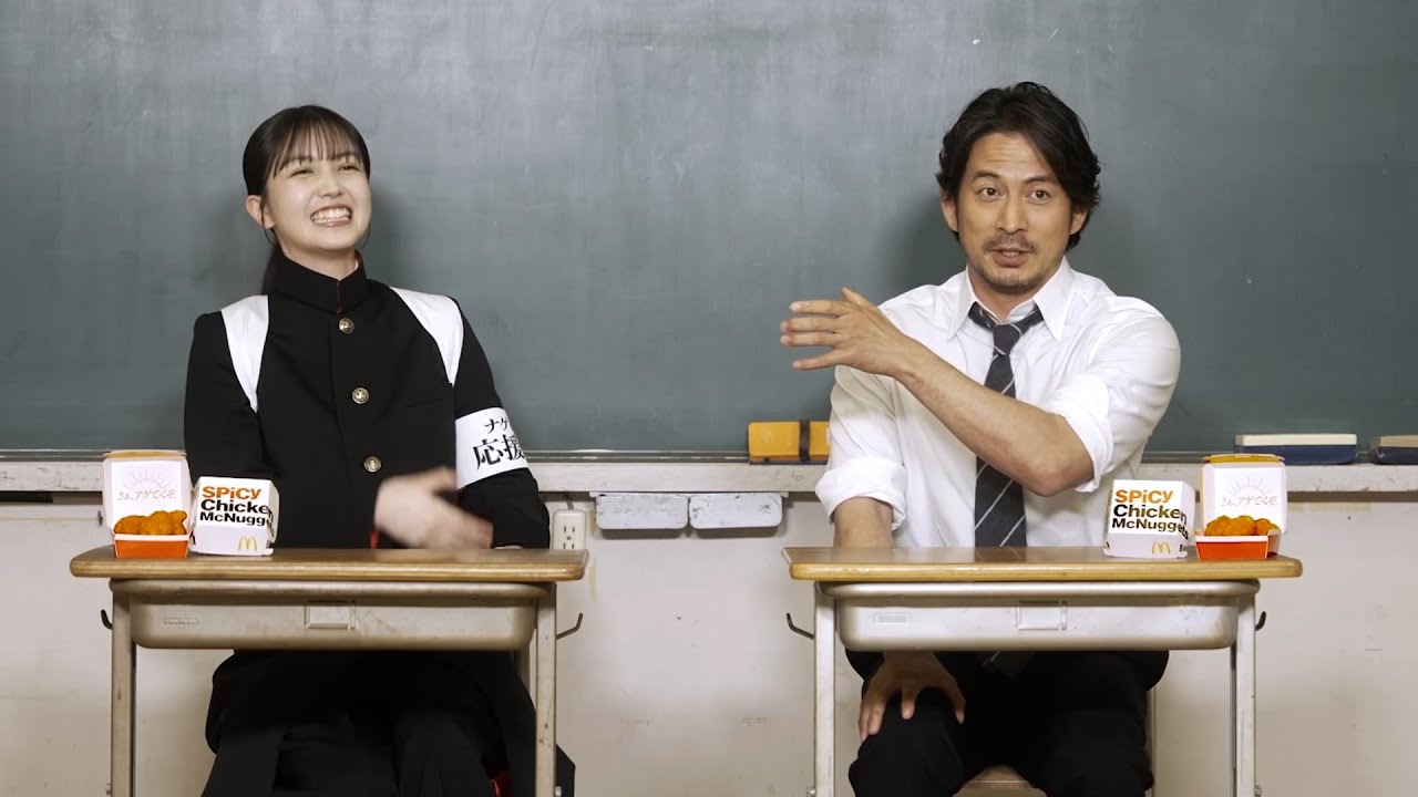6 月4 日から放映するマクドナルド「スパイシーチキンマックナゲット」新TVCMに、俳優の岡田准一と、乃木坂46 の久保史緒里が、応援部の顧問と生徒役として登場。岡田扮する熱血顧問が久保扮する令和世代の生徒に対して、「推すことの意味」を熱血指導する様子をユーモアたっぷりに描いたCMとなっている。