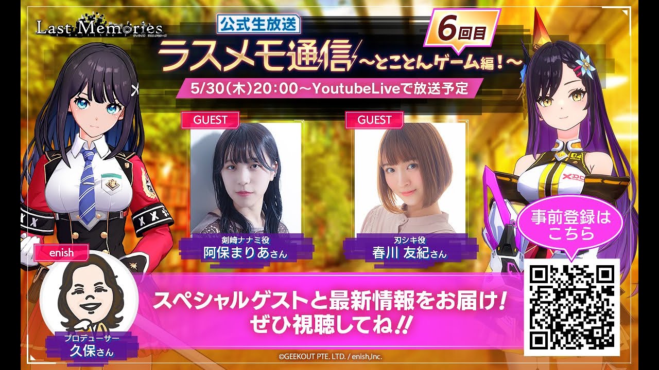 [音楽] [拍手] マイク オ前髪 オドキドキする準備は オケー 聞かせてみんなの 時めき変り手に 抜けられたペないと叶えた 焦れできるよできるんだ決めたんだ めくりチェイ変わっていく未来絶対負け ない強い自分になるシと見ててねイスあの 子おるまで全部の時間が 私色になる誰にも譲らない世界中の [拍手] [音楽] ラブゲ愛情だけじゃ 避けちゃもとないね フクシ りっきりのおたりにもかしかしとかし ちゃうハートみたい にわがままに せかかけあかて ゆくあの日た景色を描い てくタ世界で1番ウシ さえもんちゃうすなくだちゃ魔たてちゃ メロメロになる一番身は 私たけでいい目でノックアウト世界中の [音楽] [拍手] [音楽] イエーイ [音楽] カモン抜けられた ペンライト叶えた 焦れできるよてエニッシュ聞こえたら イねで いつもの 日常体をちラメモで 検索エニシプレゼンツライズラスト メモリーズ公式生放送ラスメモ通信 トコトンゲーム編 イはい皆さんこんばんは本日のラスメモ 公式生放送ゲーム編を担当いたします第5 部隊崎七役アボマリアですよろしくお願い します願いしますお願いし ますはい今回は リライズホーム編ということで前回に前回 に引き続きお待ちいただいてる皆さんに はいゲームの内容を色々と見せていく企画 の第6回6回ニになりました イはいいつもの流れで久保さんを紹介し ますよろしくお願いしますはいえ エニッシュで開発のプロデューサーをやっ ておりますこかこちか開発の プロデューサーやっておりますくです今日 もえっとゲームの魅力の方皆さんにお伝え していきますんでよろしくお願いしますお 願いします願 しそして今日はえ解説の大先生を呼んで おります待って待って待って待って今日 楽しくゲームしに来たんです私もいや本当 よろしくお願いいたしますよろしくお願い しますえはい第4部隊役の春川ゆきです よろしくお願いしますよろしくお願いし ますらさんがお後の様子を見に来ました 今日はゲームをやります今日はゲームを やり裏切りです裏切りじゃないですNFT 嫌になっちゃったみたい ですキさんもゲームやりたいって言ってた もん今まじゃ次回どっかねどっかのいい ですよ別に代わりに生徒先にはいそうなん ですね毎週金曜日に放送してるNFT会の ブラブロックチェーンブロックチェーン じゃないブロックチェーン塾なんですか はいそうです難しそうな話をいつもしてる なって思ってましたけれども今日はゲーム 界なのでなんかすごいいつもゲーム会の後 Twitterで盛り上がってくれそって いつも見頃いいな楽しそうだな念願かなっ て願かなてはい僕呼ばれてないあれあ明日 あ明日またよろしくお願いしますお願いし ますはいということなので今回はこの3人 でえっととゲーム編やっていきますがはい なんとトコトンゲーム編シーズン1最終回 で 寂しい首じゃないですからね首首じゃない です首じゃないですからね来ますからね はい大丈夫ですよ全然全然あの絶対足切り みたいなそうです一あの開発も進んでるん で大丈夫ですよ首じゃないです開も ちゃんとやってるんでちょっと今日来ます て言っとくことでまたあのねきましょうね そうはい来ますからねリリースもちゃんと されます大丈夫ですなので今回はこの3人 でやっていきますよろしくお願いし ますあれなんかすみさんが頭頭抱えてる 大丈夫だよね大丈夫ですよね大丈夫だよね あの大丈夫 ですあれてたはいはいはいということなの で次をどうぞお願いいたしますはいまそう ですね今回もYouTubeのコメトと 一緒あそうだったやっぱ忘れてたこれこれ YouTubeのコメントと一緒にXの えっとQTwitterのハッシュタグ# ラスメモ通信のコメントも見ていきますの でたくさんね最後だよたくさんのコメント お願いします卒業そういい言葉使う卒業で ございますうんよろしくお願いします まだまだラストメモリーズこれからなんで よろしくお願いしますし ますはいというわけでですねえ キャラクター紹介の方をちょっと にってなはにかなと思さん担当のちゃんを ちょっとご紹介したいと思いますのでお 願いします願ますはいこちら第4部隊の クールなリーダー刃しきちゃんです私が声 を担当しておりますでどんな女の子かと 言いますとまずの効かない第4部隊の リーダー ですで大学に進学した天才少女で専門は 応用物理学頭がいいですねはいであの自分 の知識を生かそうとドール部隊に志願した んですがなぜかアイドルとしての適性が 認められて後方部隊である第4部隊に所属 をされることになりますで学級印象タイプ で起立やルールを重視するあまり人間関係 でちょっと空回りしてしまうこともあるよ というそんな女の子になっておりでかい かっこいい可愛いかっこいいうんキャラの 紹介のあのムービーもうんXの方とか YouTubeにも上がってます上がって ますのでいいですねかなりクールにねうん かっこいいやっておりますはいはいきれ ございますありがとうございますはいと いうことでうんとそうすね先