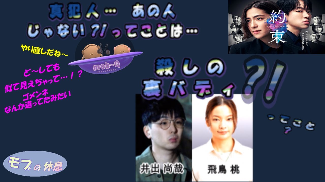 いや~~ 真犯人…木崎さん …だと思ってたんだけどね~ 違ってたみたい ごめんね! ガッチリした体型で 見れば見るほど そう見えちゃって 比べて井出君は 少しだけ小柄に見えたんだよね~ 木崎さん まだ怪しく見えちゃってるけど… とりあえず…やり直し …だね うん で… ということは…井出君1人 じゃないってことだよね うん そうなるね~ 桃ちゃん 再浮上! 一度逮捕されて 疑いが晴れて また今 お店開いてるけど… 桃ちゃんと井出君 じつは殺しのバディ⁈ …っていう怖~い裏の顔? 井出君 最初っから 怪しい雰囲気 出してたから 逆に外してた 表の顔が怪しい人は… 裏の顔も… やっぱり怪しい⁉ ってこと 素直にそう考えれば良かったね うん 桃ちゃん 再浮上の理由は? やっぱり これ! 取調室の中で 葵が桃ちゃんに言った言葉 「あなたはいったい誰?」 っていう言葉を… 真犯人が シナリオに書いている! だから真犯人は… この時の取調室の様子を 知っている人物 ここにいる誰か? ってことになるんだよね うん 「真犯人は男」っていう 目撃証言が出たから あの時は 桃ちゃんの疑いが 晴れたんだけど 第8話で 桃ちゃんと井出君が 顔見知りだって わかったんだよね ボランティアの一つで 引きこもりみたいに暮らしてて 近所の人に頼まれて ご飯を届けに行ってるだけだって? うん でも なんか怪しく感じた その井出君… 自分が殺しましたって 自首してきたよね ほぼ同じくらいのタイミングで 葵に 「今すぐ来い」って メールが届いて 指定場所が 井出雑貨店 で… 中に入ってみたら いかにもって感じの 不気味な部屋 暗~い地下室 ホラーぽかった! 16年前から現在までの 事件記事の切り抜きや 葵の実家の写真とか 壁にいっぱい貼ってあったり… 目撃証言と一致する フード付きの黒いコートと 白いロープ 葵が犯人宛てに殺人現場に残した 暗号文のメッセージ パソコンの画面には 現在行なわれている 殺人事件のシナリオ 一連の事件の犯行を 物語っている 物証だらけ! 引きこもりって言ってたけど 1人で東京のど真ん中まで 殺人しに出かける っていうイメージがわかない 他にも…この部屋の中…⁈ なんか?わかんないけど… 引っかかる 何か伏線とかあるのかな~? いや 気のせいかもしれない 不気味に嘲笑う 井出君 わざとらしく感じる 誰かの身代わり? 自ら犠牲になった…とか? う~ん 真犯人は…この中に いるっ‼ ?…って また外したりして