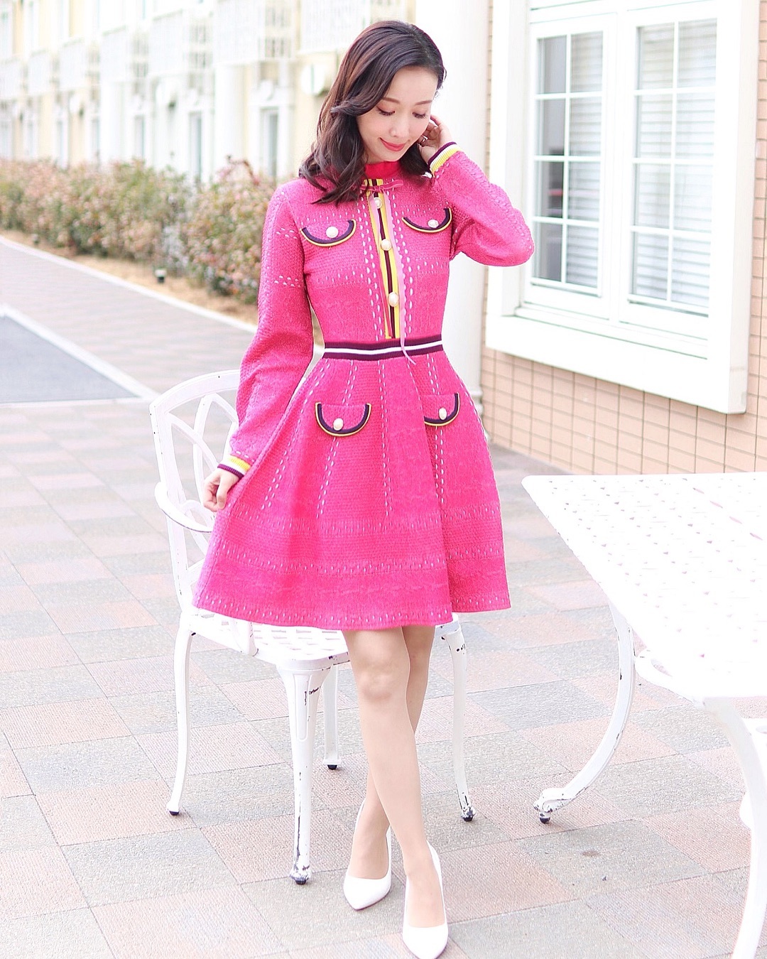 ニットワンピースなのにエレガントさもあり、これから春の季節にぴったり🌸