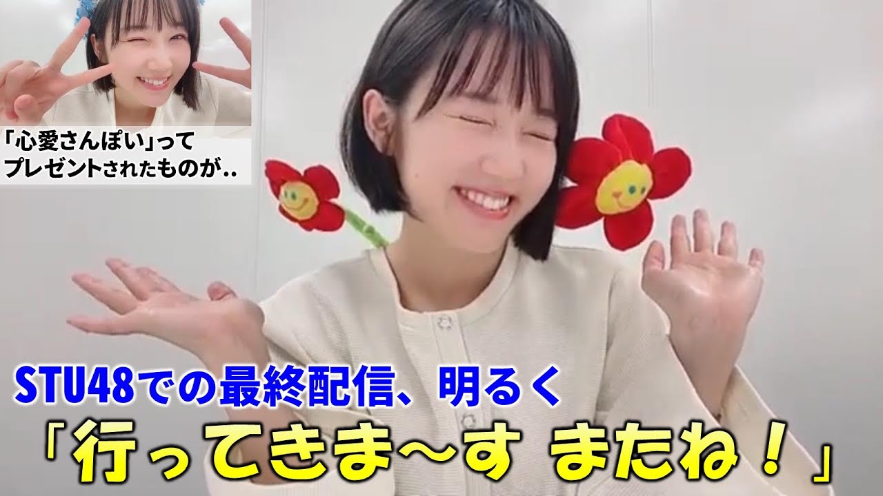 【甲斐心愛】STU48最終活動日も明るく配信!関係した全ての人への感謝を語る/移籍前にみうぽん(梶原未羽ちゃん)や播磨かなちゃんからのプレゼントが同じもので驚いた話も/STU48/KLP48/