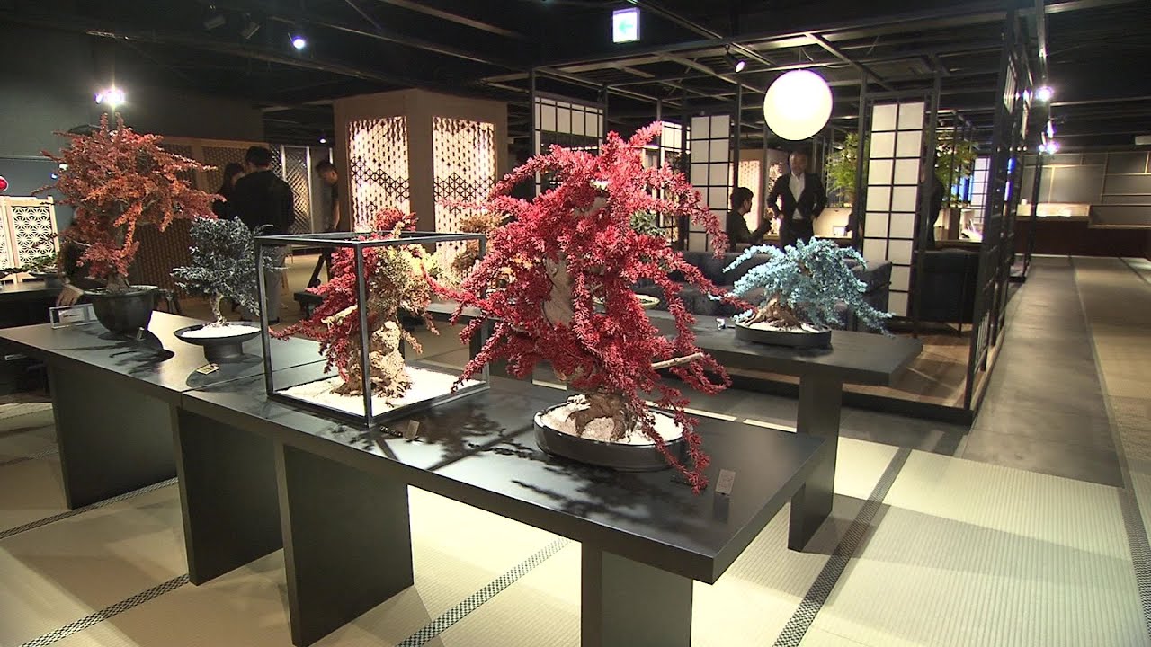 「これ、色鮮やかな盆栽飾られていますね。そして、南部鉄器や切りこのグラスもあります。シックな雰囲気で、ショールームでありながら博物館のような室内です」(糸口 真子フィールドキャスター)