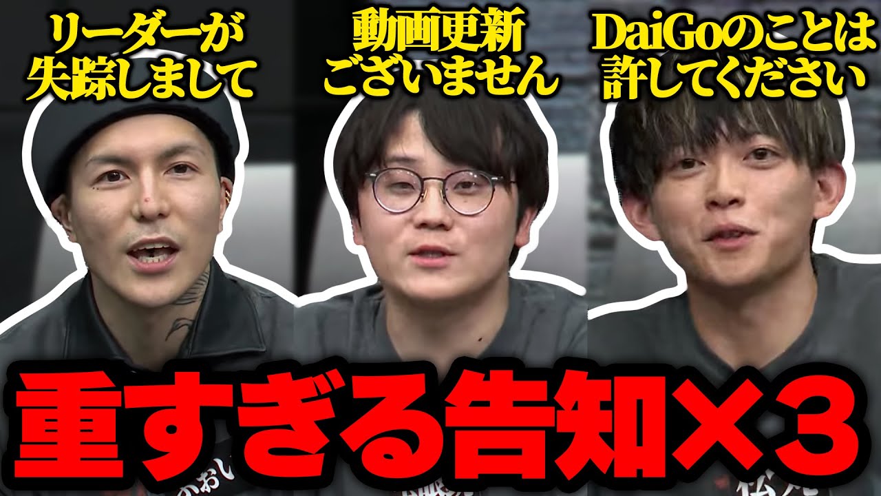 1人1人告知というかお知らせがあればお 伺いしたいんですけどもじゃぽい君あ えっと告知という告知はないんですけど えっとですね僕たちのグループ今リーダー の方が失踪して ますあのもしあのご近所とかの方でですね あのDJ社長風の男とかdj社長だって 名乗ってる男の方見たらぜひピザラジオの 方に連絡いですメルお待ちしますあござ ますもよろしくお願いし ますさんはいえ東海の方もしばら動画の 更新ございませ ん3月なんか3月15に復帰することに なりましたんで楽しみにお待ちください そうだよね3月15日だもんねえそれは 復活はがいいね今日じゃあ松丸君はいはい えダゴのことは許してやって くださいあの本当に悪いやつじゃないん あのワイン飲みながらポストだけ本当に やめてほしいあの僕のポストよかったら さみんな持ってる