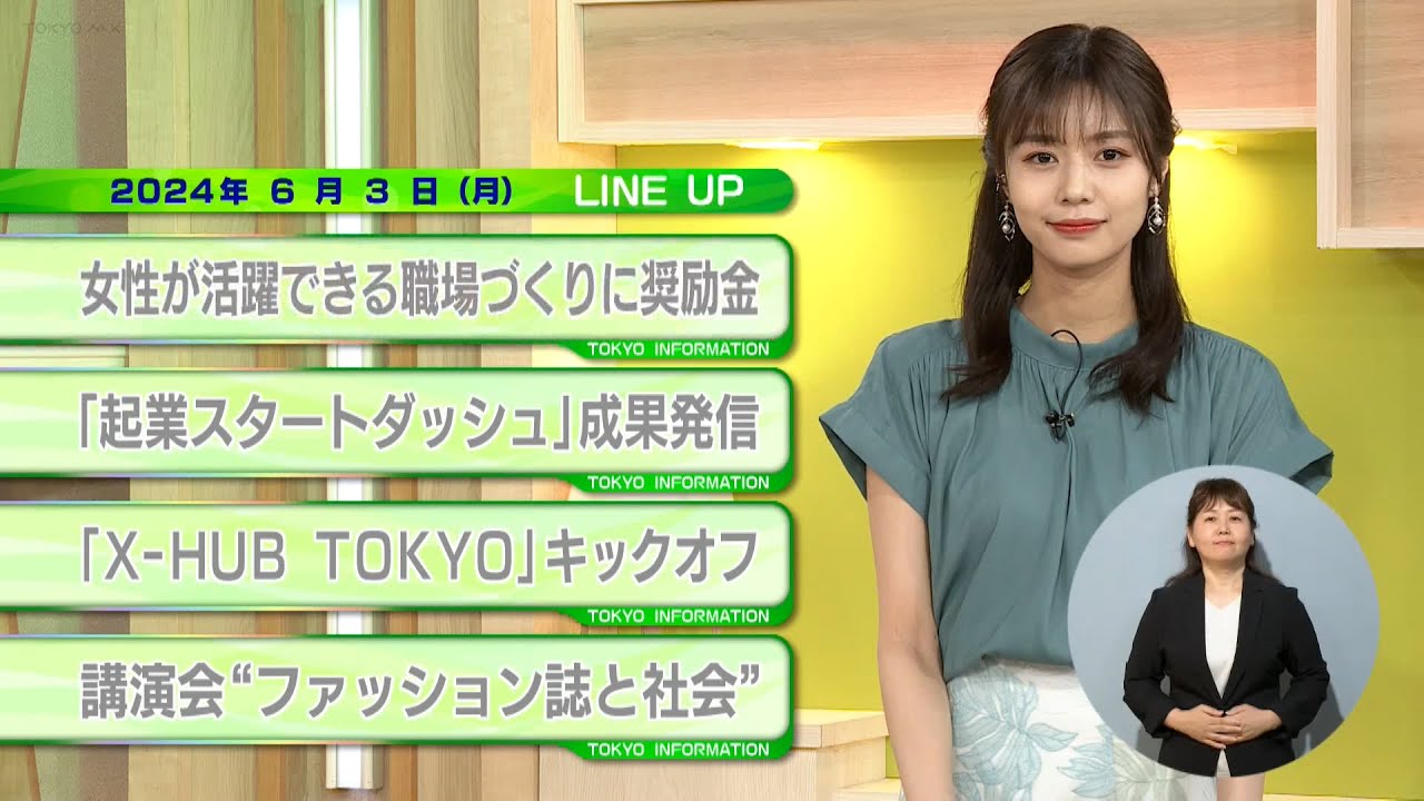 [音楽] おはようござい ます6月3日月曜日の東京 インフォメーション です東京都は働く女性が活躍できる 職場作りに取り組む事業者に奨励金を支給 します これは奨励金を支給することで女性従業員 の処遇向上や賃金の引き上げを後押しする 事業 です奨励金は1事業者30万円で支給を 受けるには無料のオンラインセミナーを 受行し無料の専門家派遣を受けることが 必要です セミナー受行の対象は経営者及び人事 ローム担当者などで第1回の開催は今月 18日火曜日の午後1時半から3時まで です受行を希望する企業は今月13日 木曜日までにホームページからお申し込み ください定員は先着順の100社ですなお セミナーは5回行われますが全て同じ内容 ですとでは高校生企業化要請プログラムの 成果発信イベントを開催し ます企業スタートダッシュを受行した高校 生たちによる成果発信イベントは来月21 日日曜日の午後3時から6時まで東京 イノベーションベースの会場と YouTubeのライブ配信による ハイブリッド開催 です対象は高等学校高等専門学校などに 在籍している人や保護者学校関係者など どなたでも参加でき ます業のホームページから来月17日 水曜日の午後5時までにお申し込み ください会場参加の店員は100人程度で 店員に達した時点で締め切りになり ますとは今年度のxhub東京のキック オフイベントを開催し ますX東京はスタートアップのグローバル 展開を支援するプログラム ですキックオフイベントは今月20日 木曜日の午後6時から8時半まで東京 イノベーションベースの会場とオンライン の同時開催 です基調公演日本のスタートアップ エコシステムのこれからやグローバルを 見据えて戦う理由をテーマとしたパネル ディスカッションなどが行われ ます参加を希望する人は公式ホームページ のエントリーフォームからお申し込み ください参加費は無料 です都立玉図書館で東京マガジンバンク カレッジの講演会が開催され 東京マガジンバンクカレッジは都立玉図書 館の豊富な所蔵雑誌を活用し学びと交流の 拠点を作り上げることを目指す取り組み です今回は現代ファッション雑誌文化の 研究者で花子やアンアンなどの元編集長 富川敦子さんがファッション紙の企画と 社会とのつながりについて講演し [音楽] ます来月6日土曜日午後2時から4時まで 都立玉図書館2階のセミナールームで開催 し [音楽] ます参加を希望する人は応募フォームまた は往復はきで今月10日月曜日までにお 申し込みくだ 店員は120人で応募多数の場合は抽選に なります往復はがきは当日化身有効 です今日お伝えした内容は番組のホーム ページにアップしていますのでご活用 くださいここまで東京インフォメーション でした