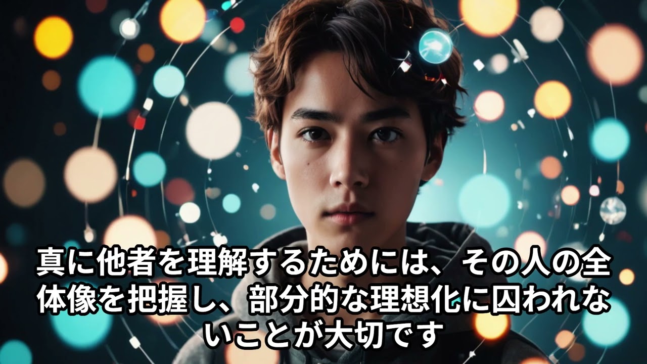 この洞察は、あらゆる人間関係においても当てはまります。一人の人間に焦点を絞りすぎると、その人の本質や多面性を見逃してしまう可能性があります。真に他者を理解するためには、その人の全体像を把握し、部分的な理想化に囚われないことが大切です。