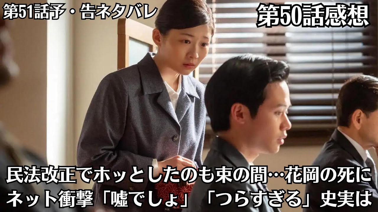 朝ドラ「虎に翼」第51話予・告ネタバレ!花岡の死の知らせを受け、寅子も衝撃を受けていました?!第50話感想!民法改正でホッとしたのも束の間…花岡の死にネット衝撃「噓でしょ」「つらすぎる」史実は