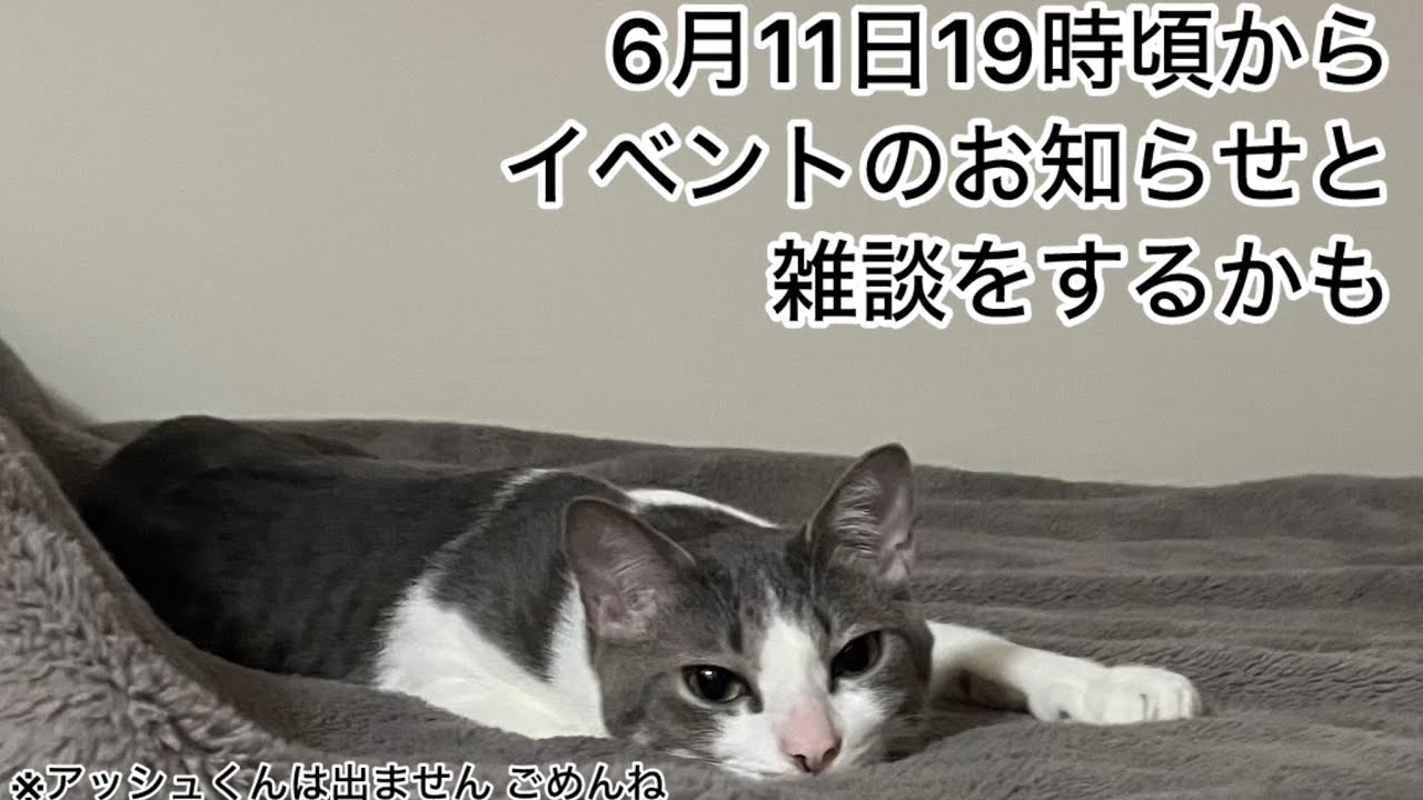 なにか食べながら雑談をするよ イベントの情報もすこしお話しするかも 配信のあとにチケット申し込みのリンクをツイート(ポスト)するからチェックしてね