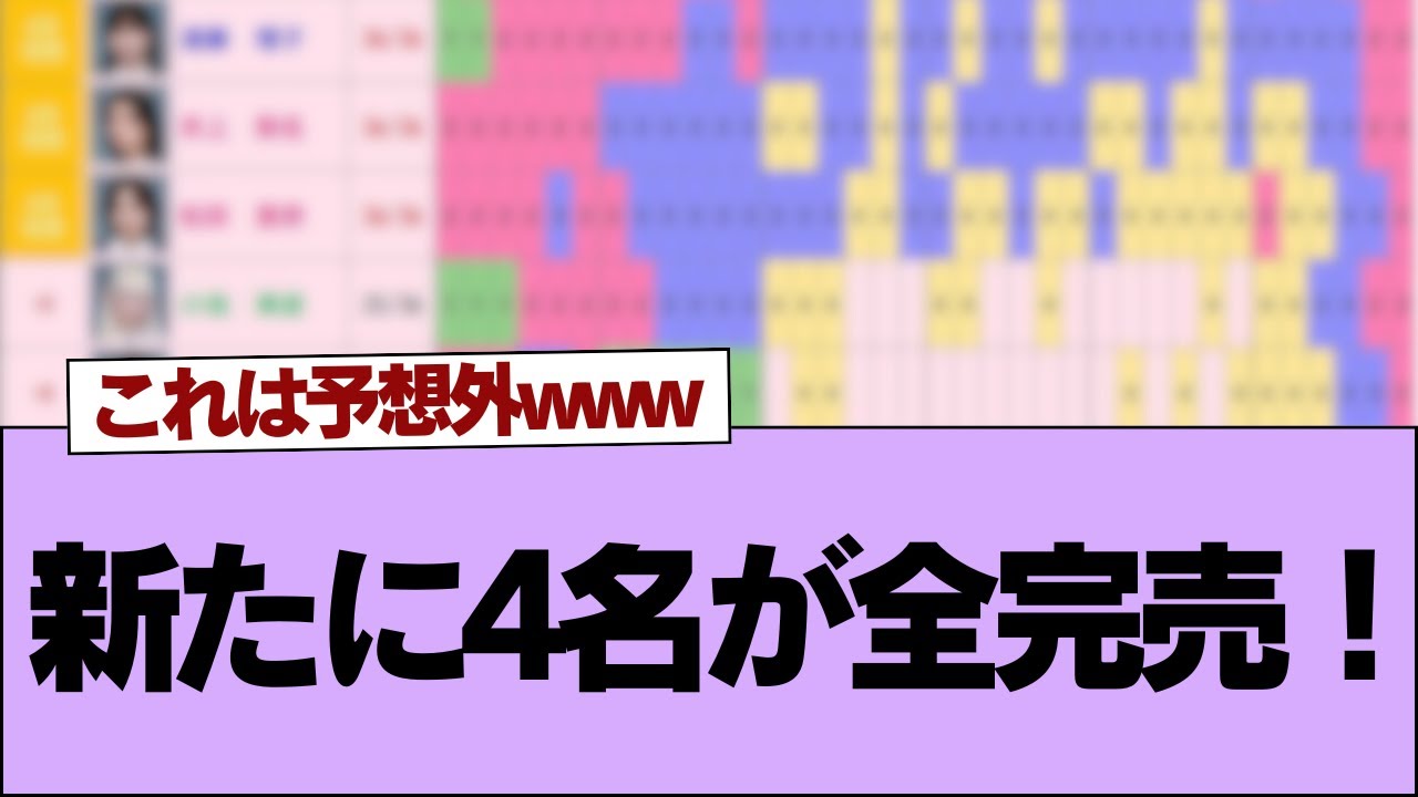 [音楽] 新たに4名が全完売桜坂46ミグ第4次 受付完売表は こちら完売スピードも考慮されてるから 分かりやすい次作は向かが初戦抜確定で3 時完売組では竹本石森小田が ボーダーライン全体の完売速度が早くなっ てるから未完売面にも流れてるのを理解 できない人がおるな個人的には売速度より も2売メンバーの伸びに期待したい 売り上げとかに直結するわけだからやっぱ 箱押しならこの辺りは注目したい数字出さ れたら推測かよ未完売面も売上が増えた これ以外の事実はない底上げできてます けどプラスに捉えてるっていう意見でいい んだよね未完売は次もアンダー確定で ボーダーとの争いは起きないからこれから 変われるといいな前作完売して今作の選抜 から漏れた人はカップリングのユニットと かで救われてると良いんだけ 3時売でも選抜になれないとかかわいそう だなファンが勝手に盛り上がってるだけで 確定かどうかなんてわからんのよこれを 理解してないと後々勝手に期待して勝手に 怒る人が出てくるので桜坂すごいな自分は お様だけど曲は桜坂が1番だと思ってる ちなみに向えちゃんとしたちゃんが好き次 の会に追加会予定だったのがド限定写真 付きでそちらに予算回す人いるかもな 真ん中ありのミブリ日程が埋まりづらいの はなんでですかこんなは全艦売いけるのか なマリノスは前回4時で完売にだったのか 最近そ作でもミーツでも面白いからもっと 伸びて欲しいな4時売は4人桜坂46選抜 メンバーの人数が14名なりえ選抜が14 人なの正直バックスライブ人員確保のため でしか バックスライブをやらないシングルがあれ ば16人とかできるのではバックスライブ がマシングルになる前に14人縛りが ほとんどだったからバックスライブ関係 ないと思うけどねバックスライブのために 小人数選抜ってのも勝手な決めつけ でしょう今は16人選抜にすると補欠の方 が少なくなってしまうから次の4規制で6 人ぐらい追加すれば16人先発が復活し そうエの時みたいに3列目メンバーも バックス参加にすれば選抜面増やせると 思うんだけどね3期の加入であの頃とは 状況が全然違うしなこのままだと3時売で も選抜入れない選抜人数が多いとどうして も固定になりやすくない3時でも落ちる子 がいるもっと早く乾杯させなきゃって話が 出ることが14人を正解だと言ってるよう なもんよ早く完売させなきゃってのは単純 にミーグリ順の影響で14人は関係ないと 思うよに人数増やせばそれだけ選抜入れ ないで悩む子が増える昨今テレビ出演も数 回しかないしみんながストレス少なく活動 できると良いのですが3時完売でも選抜に 入れなさそうなのが問題桜つの頃は全完売 できてるメンバー14人しかおらんかった からその選抜人数でやれてたなるべく選抜 人数多くしたらどうなるかは欅ナインスで 見たから14人で良いよ4期生が加入する 前に卒業生が出るならその減らしていって よいよ