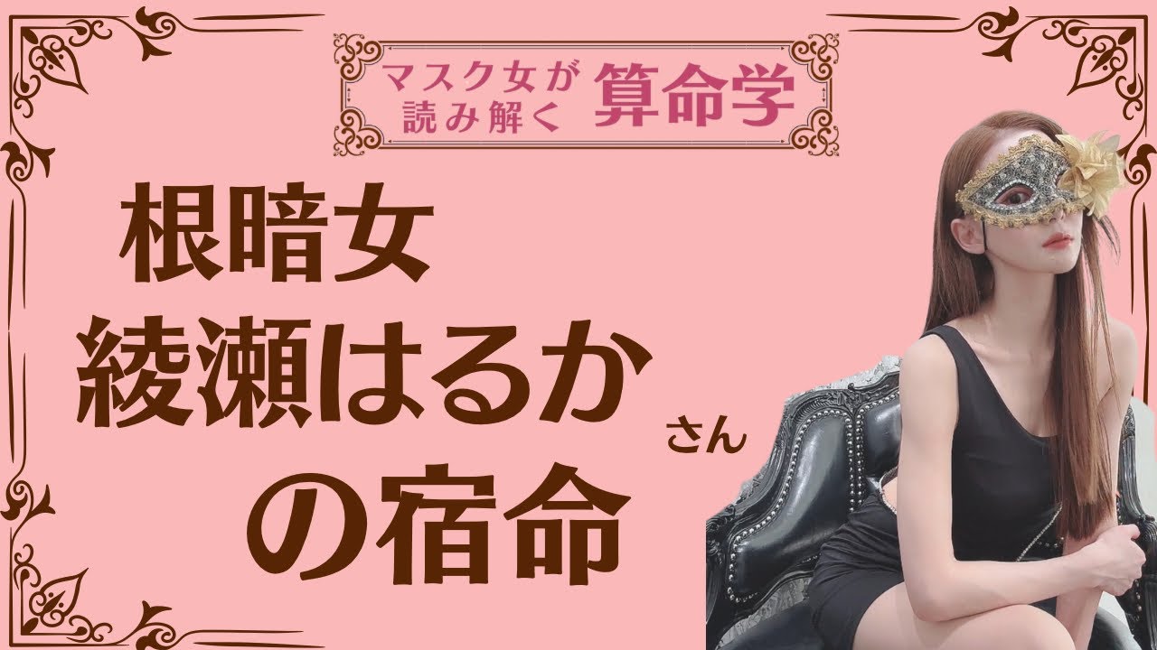 [音楽] 皆さんこんにちは3名学を研究しているさ ですよろしくお願いします今日は綾瀬はか さんの宿命を読み取っていきたいと思い ます3名学は同じ青年月日でも境 で全く違った人生になりますそして何より 運勢学という空想の世界お遊びの 世界娯楽の分野ゲームの分野であるという ことを配慮しくれぐれも本気にならず 遊び心を持ってご視聴 くださいでは読み取っていきたいと思い ますよろしくお願いしますまず最も特徴的 なのは青年天中 中犬の死合で土星か木星で土星と見て土星 地士一期格になりますそして14歳から 34歳まで変国立大運が回ってくるところ ですこの宿命中殺は芸能界はぴったりなの で宿命と環境が一致している素晴らしい人 であるということが分かり ますそしてこのの青年点中殺と犬牛の小形 に長女性中殺の組み合わせは綾瀬さんの親 はパっとしなくとても弱く頼りにならない 親であるということが分かります綾瀬さん に迷惑をかける親だということが分かり ます1つぐらいの条件では見ませんが3つ 重なっているので綾瀬さんは親にをかけ られる名です綾瀬さんは異常監視がないの でこの14歳から34歳の20年間の変国 率大運でそこでスター性を発揮できること を表しています今39歳でその期間から もう抜けて5年が経っています綾瀬さんは 今この14歳から34歳の登りの時のよう になんだかうまくいかないなと感じてい ます周りからうまくいっているように見え ても綾瀬さん自身は今満足はしていません 34歳からは宿命の呼形と正法と等方の 呼気形プラス派で確実に親または身近に いる目上が綾瀬さんに迷惑をかけています 綾瀬さんというのは10代20代今もこれ からも心のあり方目標生き方が一貫してい て変わらない人であるということが分かり ます非常にスケールが大きく周囲の人を 魅了する不思議な魅力を所有している人 です綾瀬さんは召した部事務所の後輩にも 優しく面倒を見る人であり目下を育てる人 であります着実にコツコツと1つ1つ努力 を積み重ねていける素晴らしい人間である ということが分かりますそして綾瀬さんは ここ夫の場所に夫の感があるので1度狙っ た獲物1度狙った男は話さないことを表し ていますここは晩年の最後の場所なので そこに夫の星が来ているということは綾瀬 さんの結婚は晩年となることを表してい ます底がしっかりと下にいるので綾瀬さん は結婚はする人であるということが分かり ます近いのでいいのがありまして夫が回っ てくるこの底の年42歳これは年上の男で 綾瀬さんはそのこの人のことをすごく気に 入ります41歳の引用違いの兵でもいいん ですがこの時の男だと体の関係が先になり ますが結婚まで行ける相手です来年40歳 は東方大反回なのでグループ高裁で男と 出会い41歳で個人的な付き合いをし42 歳で結婚だと近いところで言うと自然通り の流れとなりいい結婚となり ますしかしやはり夫の場所に真母が来て いるので綾瀬さんの親母は迷惑をかける または出しゃばってくる人間であるという ことが分かり ますそして綾瀬さんの要せはこの中殺され た長女性と中殺されていない長女性があり ますこれは中殺された長女性の悪さは出 ないことを表していますこの組み合わせは 影のある悲しい女の役柄が合います最後は 死ぬまたは殺されるような悲しい女の演技 が綾瀬さんはヒットします事故や病気その ように影のある演技が綾瀬さんはとても 似合います事務所は明るい役柄じゃなく 綾瀬さんには影のある悲しい役柄を掴んで くるとヒット作となります綾瀬さんは影を 負う女ですそして3月生まれの水春の水は 太陽が守護心となります綾瀬さんはへてが 回ってくる時に運勢が伸びます綾瀬さんは へてが回るのは64歳からの20年間と なります綾瀬さんはこの14から34歳の 20年は変国立大運で最高の登り運だった が今は登り運じゃありません次の64まで まだ時間があり ます現状キープというところですこの綾瀬 さんが通過してきた変国立大運というのは 人生に冒険ができる登り運なんですけれど みんながみんな来るわけじゃありません しかし有名人著名人は必ずと言っていい ほどこの登り運が来ますそれも活躍し やすい体力がバリバリある20代30代 40代にちゃんと来ていますこれがまさに 運普通の人は登り運は来ません来ても70 代80代90代とかですこのように女優 アイドル綾瀬さんみたいな有名人は20代 30代に来ているパターンが非常に多い ですもうそこで運を掴みそこで運に乗れる ので綾瀬さんは34歳までにもう運を掴ん だ人であるということが分かり ますもちろんこの登り運というのは頑張っ た人だけであり家でプーっと寝ているだけ の人は登り運も何もないです登り運が来る 人はその時期に頑張らなければなりません 登り運が来るだけで恵まれている人 ですそして綾瀬さんは過酷金過酷金過酷金 と3つの黒線があり女性が才能です綾瀬 さんは女性が才能ということは役者女優は まさに転職であり女優になるために生まれ てきたよ