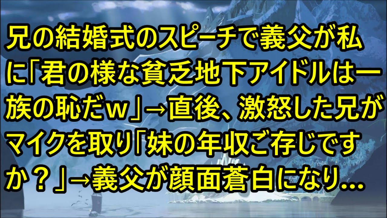 【スカッとする話】兄の結婚式のスピーチで義父が私に「君の様な貧乏地下アイドルは一族の恥だw」→直後、激怒した兄がマイクを取り「妹の年収ご存じですか?」→義父が顔面蒼白になり…【修羅場】