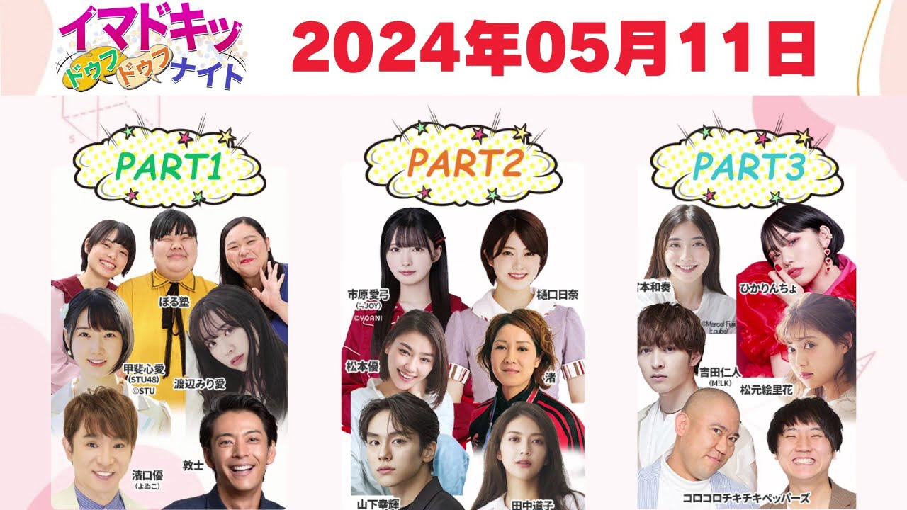 【よゐこ濱口、甲斐心愛(STU48)、渡辺みり愛、ぼる塾、樋口日奈、市原愛弓(≒JOY)、コロチキ、吉田仁人 (M!LK) etc.】