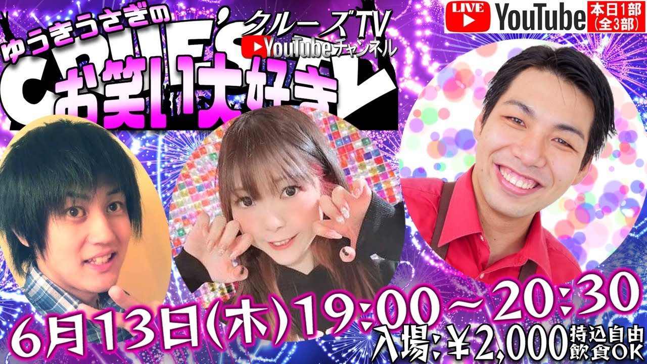 6月13日(木) 19:00 から生配信 #クルーズTV『ゆうきうさぎのお笑い大好き 1部(全3部)』マリッジスターこうもと オオシロ大魔神 お笑い芸人 漫才師 コント グラビアアイドル 1337