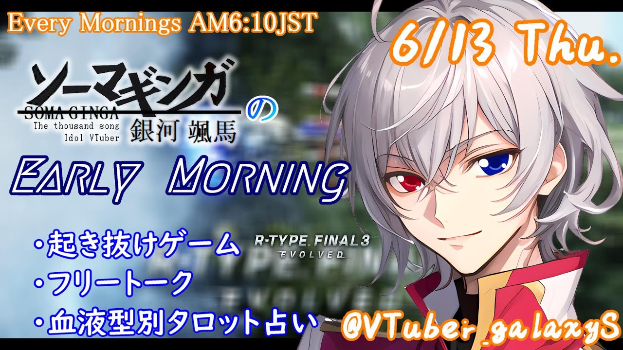 【#朝活 】6/13 銀河颯馬のEarlyMorning 起き抜けにゲームと占いと雑談✨【毎朝6時10分から#地下アイドルの #朝活配信/Vtuber/銀河颯馬】