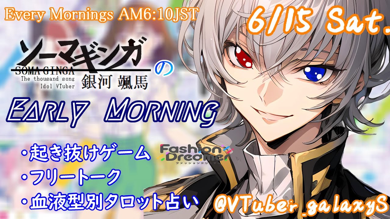 【#朝活 】6/15 銀河颯馬のEarlyMorning 起き抜けにゲームと占いと雑談✨【毎朝6時10分から#地下アイドルの #朝活配信/Vtuber/銀河颯馬】