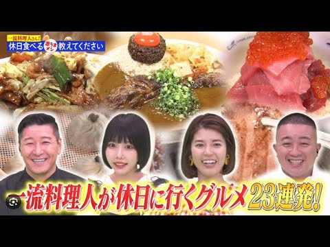 一流料理人たちがオフの日にわざわざ通うお店は絶対に美味しいハズ!そこで!この番組では、さまざまな分野で活躍する料理人たちの休日に徹底密着!ミシュランシェフから超行列店、有名店・総料理長、食べログ百名店、創業100年越えの老舗、芸能界No1料理家親子まで!すると、そこには知る人ぞ知る名店から、思いもよらぬチェーン店まで、驚きと発見があふれていた!永久保存版、全23店舗を一挙大公開!