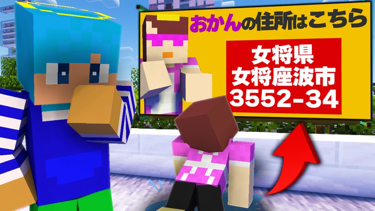 おかんの住所を街中ポスターで大公開してみた【まいくら / マインクラフト】