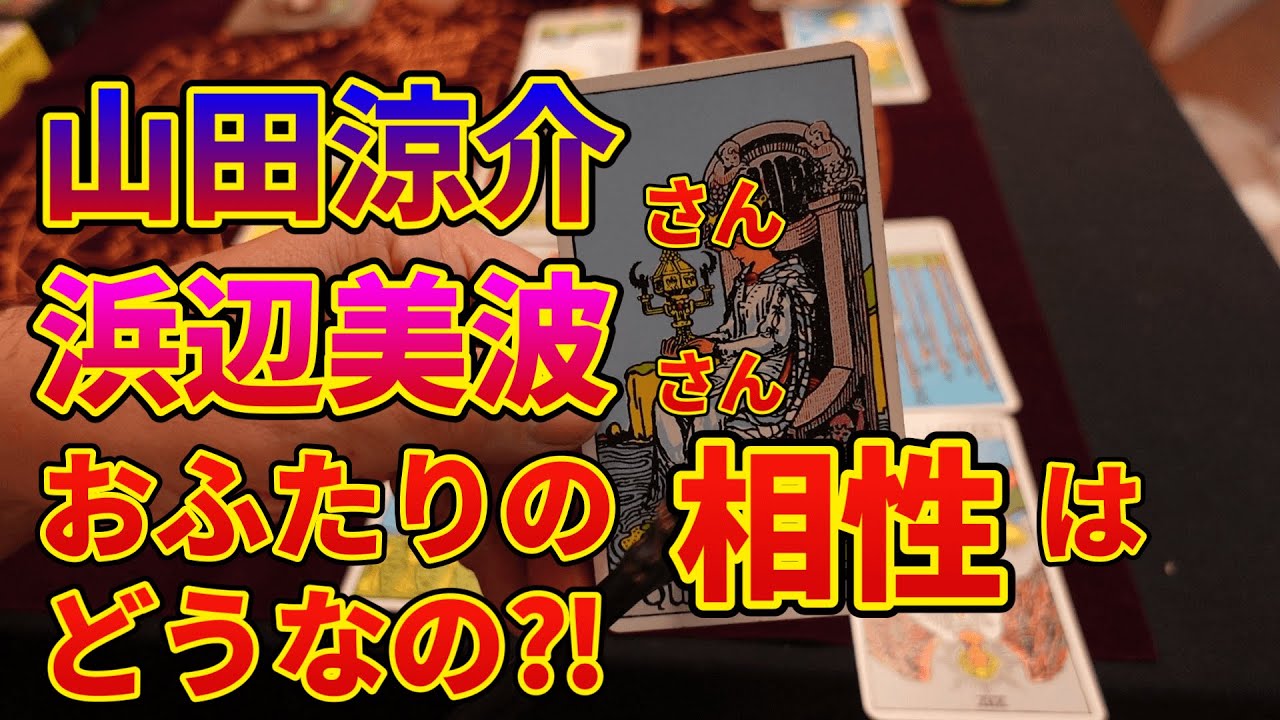 はい皆さんこんにちはアランですえこの チャンネルはタロットカードで気になる 話題を占って遊んで ますえ皆さんがタロットカードが覚え られるようにカードの方も説明してますの でチャンネル登録してみていただければな と思いますえっとね今回リクエストで ちょっとお待たせしちゃったんですけどえ 浜辺南さんと山田さんのね相性を見て 欲しいということで え2人のね相性をね占ってみようかなと 思いますまいろんなスプレッドあるんです けどやはりあのケルト10gがね1番 分かりやすいしえ結構ね正確に出ると思っ てますのでまケルト十字でね占ってみよう と思いますまずね浜辺南さんからね占って いきます DET [音楽] [音楽] はいでは浜辺南さんからね見たあ山台りす さんとの相性ということでね見てみます えっとねまずね過去をね見てみましょうか ね過去はこの力のカードはね逆に出てるん ですねのカードま過去というとねえお互い その共演する前のことですよねえ過去の ところは力のカードがね逆に出てますこれ はね自信を表すカードなんですけどそれが ねこう逆に出てますのでま あのあまりねその過去においてねえ浜辺 さんは山さんに対してあまりねがなかった ようなあ感じのねカードはね出てますねで はね えー現在をね見てみましょうかね浜辺南 さんはね山陽介さんをどう思っているのか 現在をね表すカードこちらですねこれね 女帝のカードがね出ております女帝これは ね え女性のまトップの人ですねそれでま豊か さを表しているとえね麦が方策でえ頭には ねこう宝石の散りばめたティアラとあと豊 さ以外にここにね あのま戦いの盾がねこう置いていあの置い てあるわけなんですけどそれがねハート型 ということでま愛情もね深いえ人なんです ねこの女帝というのはまということでねえ ま浜辺さんはえ山さんにしてね現在 えね愛情があるのかなという感じがね出 てるんですけどただここでねえ現在浜辺南 さんのねちょっと気持ちの方をね山義介 さんに対する気持ちをね見てみましょうか ねこれがえっとペンタクルスのエースがね 逆に出てるんですねまペンタクルスえこれ 正位置ですとねまあペンタクルス効果です ねえあとは仕事がねうまくいくというよう なね意味になりますけどまこれ逆にねこう 出てるのでま愛情え浜辺南さんのねま表面 的な気持ちとしてま山田亮介さんに対して え特にね あの愛情関係をね持って持ってないような ねカードが出てますそれで深層心理の方も ですねカップのえ4がねこう出ててえこれ はねま雲があのお酒の入ったカップをね 差し出そうとしてるんですけどねえ男性は ねそれを受け付けないということでま退屈 差とかねえそういった気持ちをね表して いるということでま深層心理としてもね 山田竜介さんに対して特にあの関心がない ような感じなんですねと言うとねじゃあ これはまああのこの愛情というのはねま 映画がねこう成功してくれるようにこうね えま願ってるまそんな感じなのかなと いうカードがね出てます ねあとその現在をね説明するカードこれが ね えっと教皇のねカードがね出ております これはあのえキリストのねまトップの人 ですねそれで教えをね与えるとか受けると か あいう意味になるんですけどまあこれもね あのまどうやらまね え仕事がねその映画がヒットするようにえ ま願っているというね感じがしますねま ここのカードがねこのえ表層心理と深層 心理が良かったらまあねここえね愛情す カードが出てますのでまねえ浜辺南さんは 山田涼介さんに対してねあの行為があるの かなっていう感じがあるんですけどま この気持ちのところを見るとね全くそう いうのがないので浜辺南さんがね山介さん に対してえなんかねえ恋心があるとかね そういうことはないような感じなんですよ ねそれと浜辺南さんの環境のところを見て みるとこれがね えっとこれが節制のカードがね出てるん ですねこれはあの物事がねこう順調に流れ ていくっていうねえ物事が順調に進んでい くっていうことをね意味してるカードなん ですねまこのねエンジェルがこうカップ上 から下にねこう水を注いでるんですけど これがね あの綺麗にこうねが流れるということでま ね物事が順調に進んでいるという意味なん ですけどま逆さにねあの出てますんで特に あの浜辺南さんと山田竜介さんのね愛情 関係がなんかこう進展してい るっていうこともねない感じなんですね次 にね周囲の環境見てみましょうかね周囲の 環境表すカードこちらですね周囲の環境え お相手のね山田介さんですねこれはえ ワンドの9がねこう逆に出てるんですね これがね正位置ですとえこの男性はねこう えま兵士なんですねそれでワンド木のねえ 柵の中でま次の戦いにね備えているとえ これはねあの慎重にね物事を進めていくと いうカードになるんですけどこれがね逆に 出てますのでま特に山洋介さんもやはりね あの浜辺南さんに対して特にね関心がある わけでもないえお