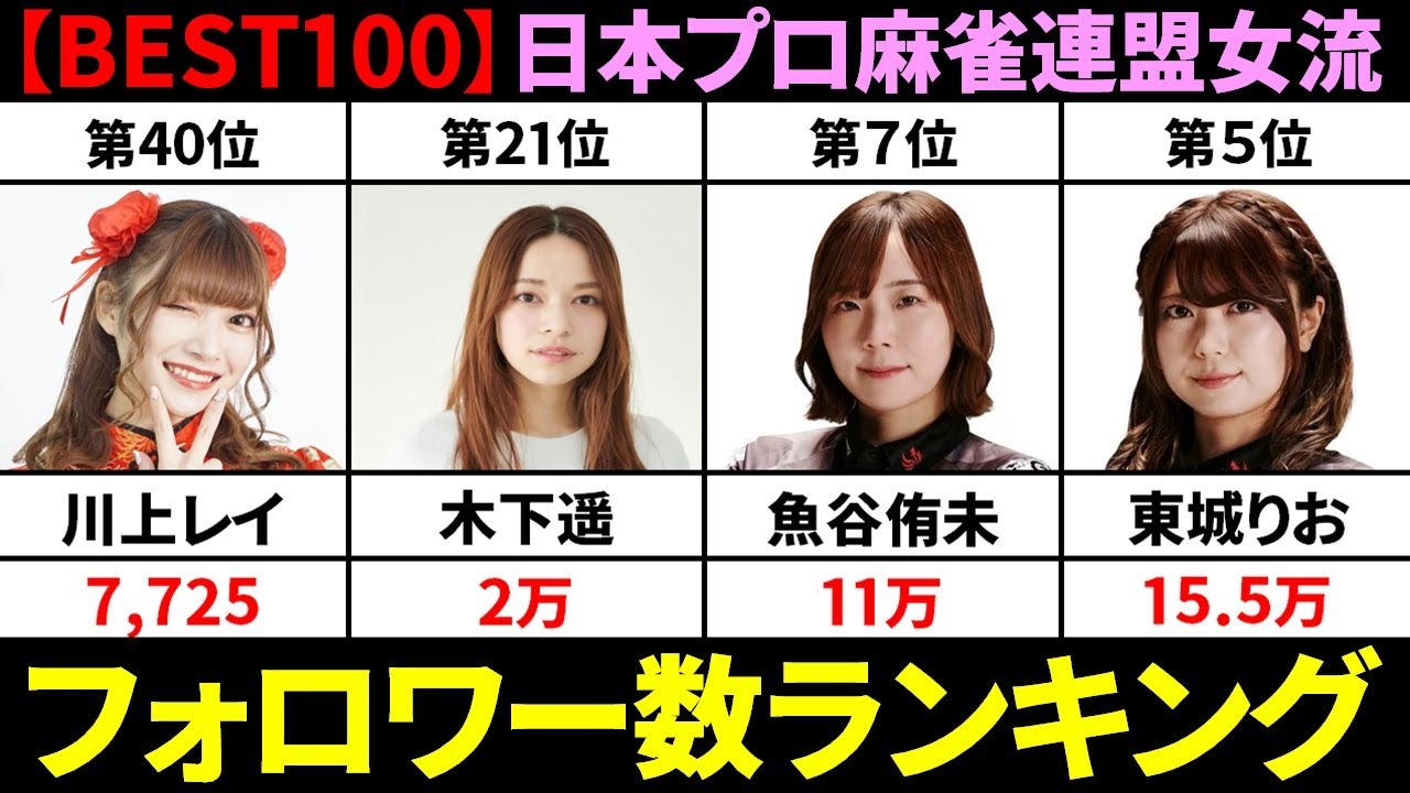 【BEST100】X(Twitter)フォロワー数ランキング!(日本プロ麻雀連盟女流編)【Mリーガー/女流プロ/女流雀士】