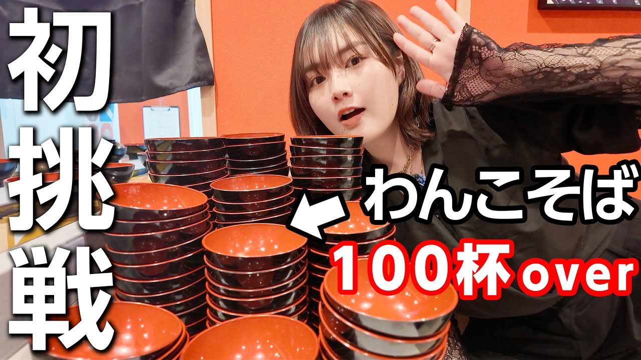 皆さんこんにちはやな夢なですななんだ ここはと思うかと思うんですが本日は念願 のワンコそばをやりに来ました うくるくるわんこさん新宿にあるんです けどそこでわんこそばをこんな感じでして いこうと思いますずっとやってみたくて ワンコそばずさんにやってみたいんですよ ねて言ったらもすぐ予約してくださったの でも1週間前の話だからねそう1週間前の そう本当にもうキキな話でやりたいって 言ったらあ新宿にあるよみたいなえあんの みたいな早速やることになりましたその ためにお腹すかしてきたので頑張って食べ ていきたいと思いますレッツ [音楽] ゴー夢なの夢はいこんな感じで注文をこの タッチパネルでやるんですけど普通のこの 通常わこが410分で3800円のやつ これでいきたいと思いますじゃあお 会計それでは準備がよろしければ カウントダウンをいたしますのでお箸と心 の準備をしておいくさいえめっちゃ緊張 する110が目標ですトト食べ始めて ください50分ですポリポにていただき ましょうこれえ難しくないこやって食べん のえカのそばは1杯約10gとなっており ますしますしてない103杯104杯 ぐらいになっておりますがついてる椀が 回ってきます月の椀はフチわこという イベントのわになってまして中身に当たり と外れがあります運のいい方は空っぽだっ たり役が入ってたりしますが運の悪い方は 大りのおそが入っていて胃袋に大ダメージ があります何当たっても外れてもいっぱい 換算です外れてしまった場合は切らないと 次へ進めないのでえ頑張ってくださいさあ かなりいいペースで食進めてますね今まだ 1分ちょっとで回超えてますうん今全12 杯目まもなくザそば1枚になります袋に 入った葉はおてどんどん重くなりますえも ですね手袋の容量をす原因の1つになり ますので最初はダルスして くださいさがその反応は外れですね頑張っ て食べてくださいその外れを食べわえいい ベースなんかなこれ分かんないどんぐらい なんかてかよく考えて40分って長くない ですか長今めっちゃ急いでるけど長いよね めっちゃ急いでるけど40分だよね今あと 36分ある40分はね長いよで結構短い ですうんほですて40分経ったのでええ 最初はあんまもりもりれた方がいいですね 4分はあるんですが大体皆さん最初の20 分ぐらいでおになってきますので最初 いっぱい食べたどかっ目指しますあ外れ そうなんだ けどえこんな食べてんのすく ないまさあこれで3枚材が2枚目ですが まだまだ余裕ですかはいまだまだ余裕 まだまだ余裕も余裕そうですねま大体5分 で30杯食べれてるので同じペースで 食べれると240杯のペースあ言ましたが え後半はですねどんどんスピードが落ちて くるのでま食続けられれば多分150から 100後半まではいくと思いますが女性だ とそこまで食べれる方そんなに多くないの でぜひ頑張ってください怖いな めはれベちゃちなみにこれですね国立は 半分半分ぐらいなのでハズれにベチ結構運 が悪い運 悪さあ10番のお姉さん10分50位行き ましたね今52杯52杯うん今まだ20% ぐらい200 ですさあ10番のお姉さん間もなく15分 経過もう60超えてるのでざ4人前完食 ですねあもう70行ってますねこれで71 回目です14分で71杯かなりいいあと 30回とりあえず頑張りましょうい全然 いけるわ100は100はいけちゃうわえ 性の平均は103104回ぐらいなので 100杯来いからら非 ですいきたいと思いますさあではレさん 15分待ちました現15分で80行きまし たね80かなりいいペースですすごえ今月 は最高力思いたりのですが女性の方が 300いっぱいなってます今月大体がプロ の方ですね一般の方はそんなにないですね うん急に来た急に来たうんさあジのお姉 さん地1杯で90になりますこれで90杯 もザス6枚分完食です ねさあとりあえずあと杯頑張りましょう 時間はまだ半分以上ありますえ苦しくなっ てきたらですねちょっとぴょんぴょん飛ぶ ような縦揺れの動きをしていただくとお空 が下に落ちてますねえ胃袋がちょっと余裕 が生まれることがありますあ腰をこう ひねったりする動きもいいですね袋のおが 流れてくりますので色々と工夫をしてえ まずは100杯頑張ってみて ください100枚いきたい100割行き たいなんかさ空気も飲んでる気がする一緒 にあと21分ある40分するずっと同じ ずっといけない無理無理 無理本当にキャパキャパオーバン絶対来る やばい止まってきたってき たさ番のお姉さんもう1張りですもう見え てますよあと2杯かなあと2杯これが99 杯目です胃がびっくりしてるめっちゃえ 何何何てこん食べるないからあと1 杯さこが駅100杯目になりますねこれが お口に入って100杯です10番の お姉さんが21分で100杯達成となり ますおめでとうござい ます100杯達成おめでとうございますさ これでオリジナルワッペンゲットですさあ 天内特は10番のお姉さんが109杯目に 手がりましたね19杯目残り時間あと15 分です110行ったらちょっと一旦うん 止め止める わアプリは げえ様は4の完成となっておりますこち 10番のお姉さんが110杯でだいぶ苦