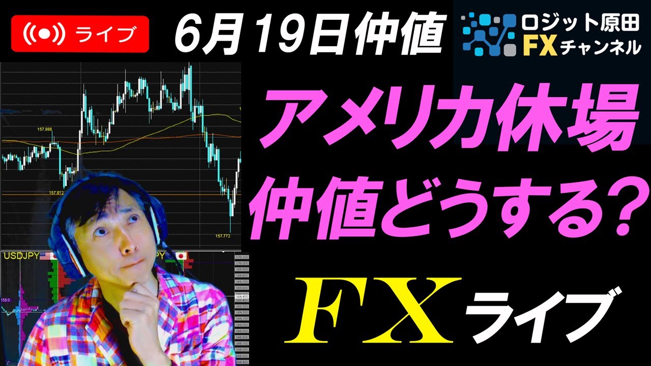 あああおはようございますロジット原田 ですただいま準備しておりますのでえ少々 お待ちくださいませ後から見る方はえ チャプターがついてからねえいいところ だけ見ることをお勧めしております よろしくお願いしますちょっと待ち くださいね音声チェックあああ テスはい大丈夫でしょうかねはい準備の方 はできたようですねはいじゃやってき ましょうかねよいしょ [音楽] はいオッケーかなできたかなはい皆さん おはようございますロジット原田です 2024年6月19日水曜日今日も中根 ライブやっていきたいと思いますよろしく お願いします今日はアメリカが急場ですね アメリカがお休みということでえ1日中え もしかしたら秋ないがね薄い相場になるか もしれませんので気をつけましょうえ そしてあ昨日のえアメリカ氷売上高などね えこの後ね見ていきたいと思いますえで 本日はねどれこれまだ動いてませんね あまり動いてないんで今のうちに今のうち に見ていきたいと思いますえまずちょっと ねえ画面暗くなりますドンえよいしょこ 売り上げだドンよいしょブルームバーグの 今朝のニュースいやじゃない昨日の夜の ニュースになりますね氷売上高の後の え発表の後の予想予想というか予想じゃ ないやえ結果えこれですね氷売上げが予想 を下回るということでどんな結果だったか と言いますとこれえっとべ氷売上高はあ 前月費0.1%増という風にしてえ像なん ですけど像なんですけど予想が0.3増 だったのでえこれは予想かなり悪い発表に なりましたえということでえ氷がうん売上 高がちょっと伸び悩んでるというとこで ですねえ 前月までの過去2ヶ月分は下方修正された ね家計のえ苦境が深まってる状況をしした ということでえどうなんでしょうアメリカ うん今後少し少しちょっと消費が落ちてき てるのかなといったところでしょうかね えーまそれを受けて米国祭金利の方が え低下しましたねちょっとこの米国祭金利 の方を見ましょうかあちょっとアラートを ね皆さんに耳が皆さんの耳をえ守るために ちょっとアラートを今切っときます ねちょっと配信中はアラートをね切ること にしましたたまにねアラとがめちゃめちゃ なっちゃなっちゃうことがあってでそれを ね切りましたので よいしょ1画面 あすいませんなってしまいましたねこれ1 回はなるのか上げとかないといけないんだ かなまあいいやあの申し訳ございません ちょっとね音が鳴ったと思いますえ失礼 いたしましたこれちょっと日経平均とかに なっちゃってますけどえ米国祭金利 ちょっと見てみましょうかえ米国祭の10 年もを見てみましょう10年もこれえ日足 日足となっておりますえちょっと落ちてき ますよねこれえ昨日のを見るために1分足 にします1分足にしましてぐーっと えっと昨日の氷はこれかなこれですね氷 売上高の発表の時にそうですね21時半だ からこれドーンとね金利が落ちましたね え 4.3近くの金利だったのがえ一気にね 4.24ぐらいまでバーンと落ちてその後 もずるずるずるとえちょっと弱い状況です ね金利があ米国祭があ買われてるという ことですね金が落ちている状況となって おりますえということなで えもう1つで計算のブルーバーグの ニュースを見るとこれえドは157000 台後半にえ上昇 と上昇っていうのはこれ一時期158に つけてたんですけどえ157000台まで まドレは下落したということですねこの 上昇っていうのはね円はということなので はい円が上昇したということでドレは下落 したえ交流売上だで米金利低下っってこと です ねはい えはい米国で予想しまる氷売上げだけ氷 売上げ高を受けて長期金利が低下しドルが 売られた流れを引き継いだということに なっており ますはい昨日はやっぱり交流売りだけ高 があ1番あのトピックとしてはね大きかっ たですよね はいあと夜中ね2時に20年祭のね入札も ありましたあこれは校長だったということ でま債権が好調ということは金利が落ちる ということですねね4.2程度まで低下 するということでさあえ対して日本の金利 はじゃあどうなっているかということで 調べてみましょうか日本の10年祭ドンえ こんな感じですまご存知の通りね一時期ね 1.%あった日本の10年祭の売りまりが あここんところずっと落ちてきたんですが え直近少しまた回復しておりますね少し 回復しております昨日はねえ若干回復で 0.948%現在の値となっております うん微妙ですね日本の場合は微妙ですねま 長期国債えっとあの日銀がこれから減額し ていくと いうことになってますしえ前回の日銀の 会合でもえそういう風な発表がありました でその減額規模についてはえ来月7月の 会合でえ決定というかね発表されると えねえ言ってましたね上座さんも おっしゃってましたねなのでうんまそれを 受けてえどうしても金利の方は減額となる とね えっと金利がアップするいうはずなんです けどなか戦をまたねそう超えて来てくれ ない状況です ねはいということでなっております えといったところでね今