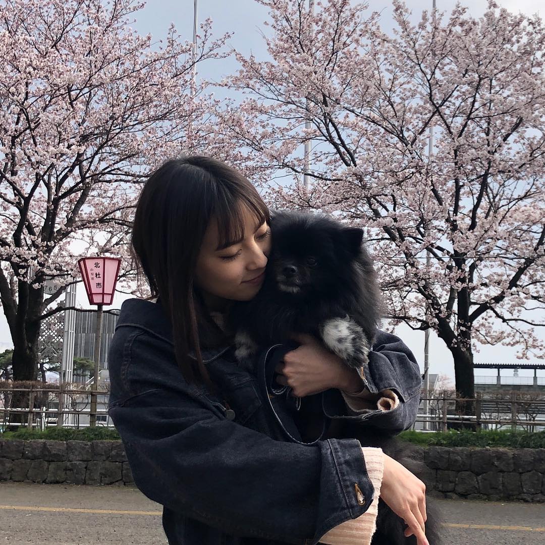 愛犬とお散歩がてらお花見🌸 た~~くさん食べて花より団子状態でした☺️笑 まだ写真は沢山あるので載せます📷 お花見だからトップスを桜色を選んだんだ🌸 @micoameriofficial だよ😌 #sarii_ikegami#池上紗理依Ikegami SariiSarii Ikegami