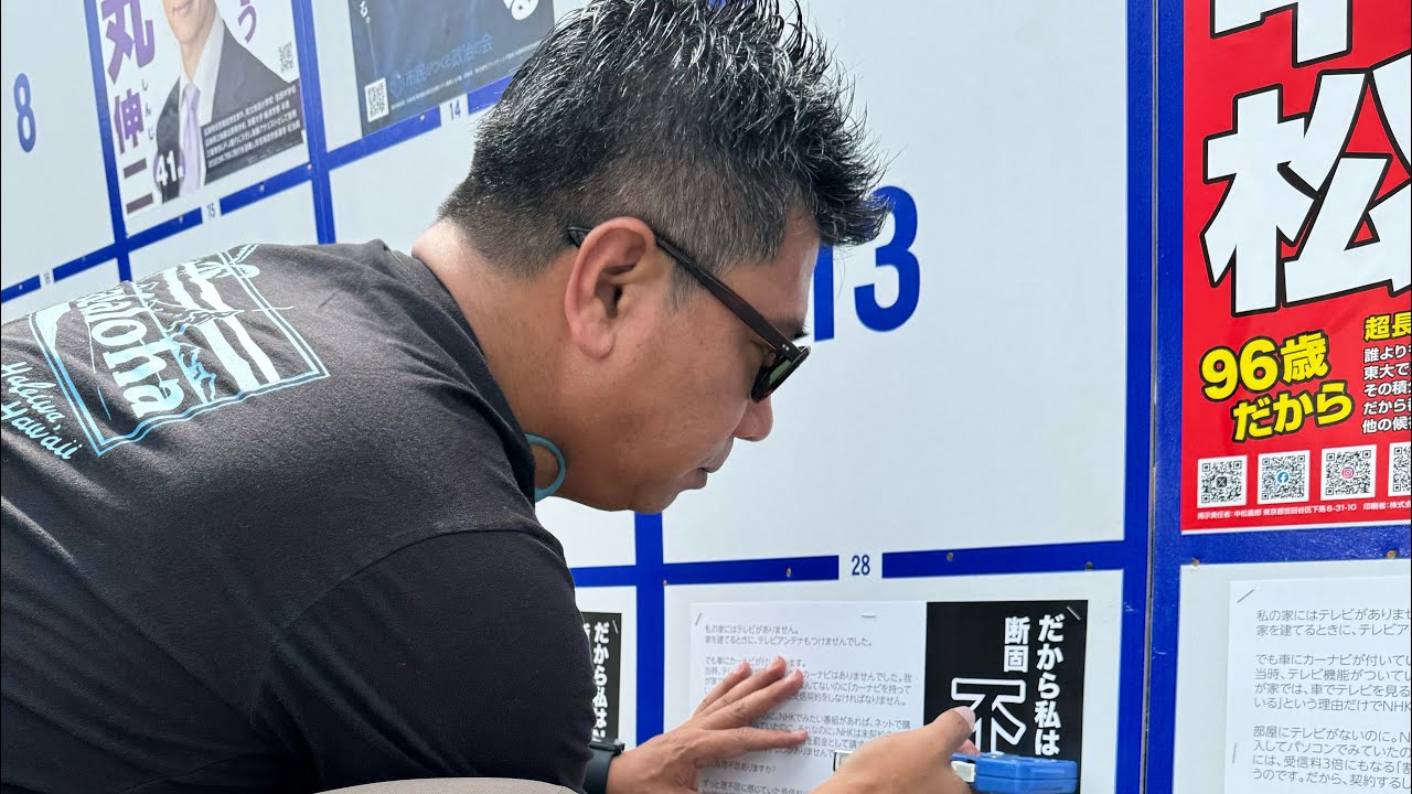 はい皆さんこんにちは斎藤郎サンキュー チャンネルということでですねえ今日は何 日や6月の24日かな土曜日ですえ今日は 1日ポスター張りをしておりますえこの 場所は言いませんえこういうパターンを ちょっと今日は貼りましたえ今ねコレア さんのねえところのポスター掲示板キープ していたいてるところをですねあの たくさんポスターをてきたんですけれども え数枚このちょっとピンクの可愛い私の 政権放送を見てねというえこのポスターが え何枚か余りましたのでちょっと変わった 張り方でねあと指示者の方指示者の方が 作っていただいたえだから私はNHK受信 料断固不払いしますというこのポスターも え余りがちょっとありましたのでえここの 掲示板に貼りましたさあどこでどこがこの 掲示板貼ってるでしょうか是非これを 見つけた方はですねあの私にDMを いただけたら嬉しいなという風に思って おりますえちなみにここえアキルの市在住 の40代の方という風な方の意見をいい てるんですけれども私の家にはテレビが ありません家を立てる時にテレビも アンテナもつけませんでしたでも車に カーナビがついてます当時テレビ機能が ついていないカーナビはありませんでした 我が家では車でテレビを見ることなんて ないのにカーナビを持っていると理由だけ でNHと受信契約をしなければなりません 部屋にテレビがないのにNHKで見たい 番組があればネットで購入してパソコンで 見ていたのにそれなのにNHKは無契約の 世帯には受信料3倍にもなる割り増し金を 罰金として請求してくるというのですだ から契約するしかありませんでしたこんな 理不尽ありますかずっと理不尽に感じてい た受信料についてネットで調べていたら NHKから国民を守る党の立花さんを知り ました立花さんはあなたは法律に乗って 契約しそして不払いをすればいもしNHK 裁判を起こされたら不払いを進めた立花が 責任を持って支払うと言ってくれています 私は不払いをしながら立花さんに守られて います感謝という風なですねえ政治的な 訴えそして感謝まある意味こう社会問題を しっかり提起してくれているこのポスター そしてこの私の可愛い私の政権を見てねと いう風なこのポスターをですねちょっと この交互に貼ったちょっと全体像を見て いただいたら分かるんですけれども ちょっと交互に貼ったちょっとこの珍しい ま都内にはこのこういう貼り方をしている ポスターっていうのは僕が貼った こののはここだけなんじゃないかなと思う ので是非え皆さん見ていただきたいと思い ますえそしてえ指示者の方々今あの ポスターをですねあの色々貼っていただい てると思うんですけれどもあのポスター ジャックNHK等のポスジャックという ところのそのサイトにですねGoogle マッのピン打ちをしておりますえそこ オレンジ色のピンでえ打たれていると ころっていうのは塔で抑えてるところなの でえそこに関してはえどうもその皆さんの 持ってるポスターをご自由に貼ってもいい らしいのでですねえ是非あのそのピンズ ピンでですねそのオレンジ色書いてる ところがありましたらえ是非ともあの ポスター張りご協力いただけたらなという 風に思っておりますえ今日1日え車でです ねガーと大きく回りながらえ1日ポスター 張りをえしておりますえ是非あのこれで だいぶねポスター張りしている最中も やはりこれはなんだなんだという風にあの 見ていただいてる方多くいますま要は反響 あるなという感じでございますえあくまで も我々はですねこういった活動をしながら もう本当にこのポスター看板がいるのか どうなのかっていうあのいるんだったら いるもうそれはいいですただいるともいら ないともそんな議論もなしにこの掲示板が 現代においても当たり前のように続いて いるというところに対しての問題提起をし ております最終的に総務省ま総務委員会私 も属してますけれどもこの掲示板自体が いるという結論ならばそれは国民の声とし ているんだろうというんですけれどもいる のかいらないのかの議論すらなくこの掲示 板をもう当たり前のように続けてきている もうこういったものに問題を提起するって いうのはもうこういうやり方をする以外 ありえないですなので我々に対しての批判 もすすごく多いですが批判ある方はある方 で批判があるという風な社会的定義をこの ポスター掲示板使ってもやってもいいん じゃないですか立花孝に断固反対します 斎藤健一郎の活動に反対しますというよう なそのような意見も全然貼ってくれても 構いませんなのでですねあの是非ともこの 掲示板一度このご寄付いただいたらこの 掲示板を使えるような形になりますのでえ 7月7日の選挙の投票日までこれが貼る ことができますま実際この掲示板撤去さ れるのはその数日後かなあ晴れるのは6月 6日までですねそしてこの掲示されてるの が7月7日まで掲示をされておりま掲示板 が撤去されるのはその23日後もしくは5 日間ぐらいは多分
