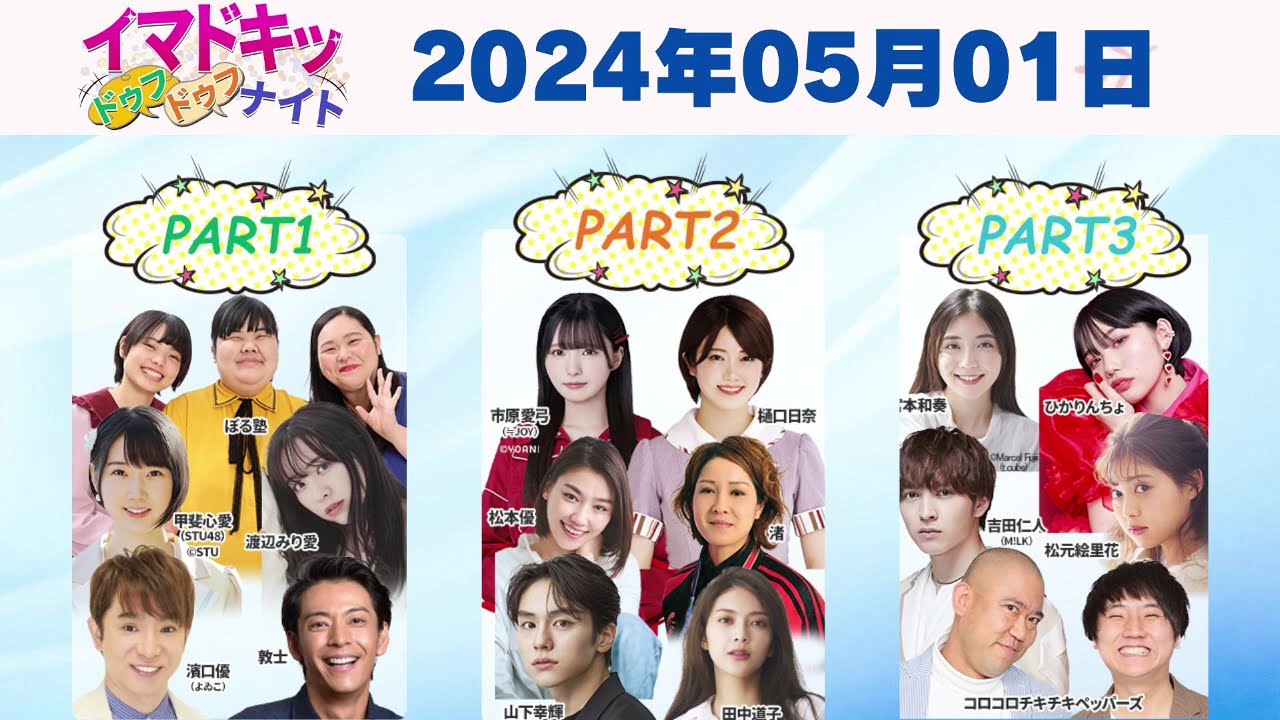 【よゐこ濱口、甲斐心愛(STU48)、渡辺みり愛、ぼる塾、樋口日奈、市原愛弓(≒JOY)、コロチキ、吉田仁人 (M!LK) etc.】