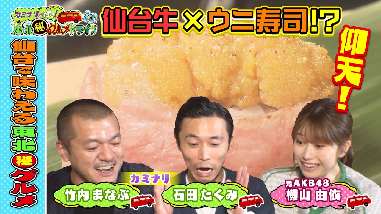 【カミナリ&元AKB48横山由依】東北の究極グルメを食べまくる旅「カミナリが行く!東北㊙グルメドライブ14」2024年6月29日(土)ひる12時55分放送