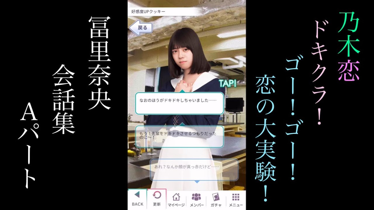乃木恋にて現在開催中の新イベント「ドキクラ!~GO!GO!恋の大実験!~」の冨里奈央さんの会話のプレイ集(Aパート)になります。