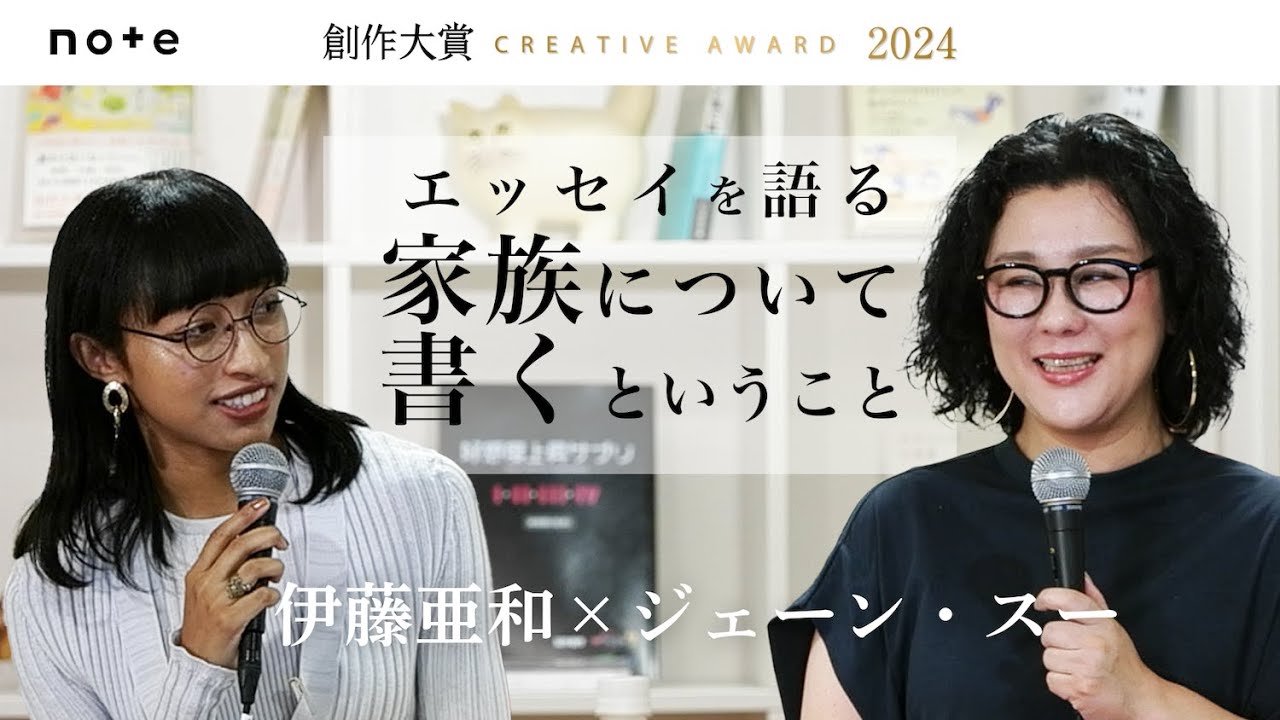 [音楽] JAJA [音楽] [音楽] [音楽] [音楽] JA [音楽] K [音楽] [音楽] [音楽] JA [音楽] [音楽] [音楽] [音楽] [音楽] JA [音楽] [音楽] YJA [音楽] [音楽] こんばんはノートの志村です本日はジェス さんと伊藤アさんをゲストにお迎えし家族 について書くということをテーマに四谷の ノートプレースから生配信でトークをお 届けします改めてゲストのご紹介です お1人目のゲストはノートに掲載したパパ と私が昨年Xで多くの著名人の目に泊まり 話題となった伊藤あさんですパパと私は 昨年捜索大賞2023でメディアワークス 文庫省を受賞しこの度作品が収録された デビュー作存在の耐えられない愛しさが目 たたく観光されました本日はよろしくお 願いしますはいよろしくお願いします糸 です お2人目のゲストは皆様ご存知の通り ラジオパーソナリティやエッセースとして 多彩に活躍されておりますジスーさんです 伊藤アさんを見出したお1人でもあります 本日はよろしくお願いしますよろしくお 願いし ますえお2人には家族についてエッセーを 書いているという共通点もございます本日 はお2人に家族について書くということを テーマを軸に伊藤さんの作品のお話や エッセーを書く時に心がけていることなど にも話を広げながらお話をしていきたいと 思いますえ最後にお2人に質問をえ質問に 回答いただく時間を設けております会場に お越しいただいている方からの質問とXは YouTubeでいいた質問も時間の許す 限り答えていただきたいと思います YouTubeで配信をご覧の皆様は YouTubeのチャット欄にえ TwitterXのスペースでご視聴の方 はハッシュタグ作大賞イベントをつけて 質問を投稿 くださいはいそれでは早速あの本編に移っ ていきたいなと思うんですけれどもまずは ま伊藤アさんのパパと私という作品につい て改めてご紹介したいと思いますえパパと 会わなくなって7年経ったという文章から 始まるこの作品はえセネガル人のお父さん との思い出から始まりお父さんと路上で 警察沙汰の大喧嘩をするエピソードが綴ら れた作品ですえノートには2022年なの で2年前ですねの1月に投稿されていたん ですけれども昨年の父の日のタイミングで えアさんがポストしたツイートをジェス さんとか伊藤さんがご覧になってシェアし たことで大きな反響を呼んでおります伊藤 さんこの時のことは覚えてますかそうです ね本当にバズったって時は焼肉食べて てあのなんかおみたいな正直そのはなんで こんなことにみたいな気持ちでは正直 なかったかなっていう風に思い出します けどもまやっぱり記事は1年自体前に公開 しててその時はほとんどその大して感想と か反響とかもなかったのでなんか今になっ てバってるの見てまああよかったいいもん だったんだっていうのとま本本に タイミングなんだなって運もあるんだなっ ていう風に思いましたはいその父の日に ツイートした時はなんかバズラせようとか そう狙ってやったわけでは特になかったん ですかまそうなったら嬉しいでしょです けどそのうんうん特にそういう めちゃくちゃ気合いが入ってたっていう わけではないと思いますはいそのツイート をアさんのツイートをスさんはご覧になっ たということですよねそうですね嫌なこと ばかりのTwitterです けど地獄のTwitterにも天国ありと いう感じであのまたまたま回ってきて読ま ないことの方が多いんですけどうんうん うんまなんか父親ののことを書いたのが父 の日に回ってきたからじゃあって言って 読んだらめちゃくちゃいい文章であすごい 人出てきたなと思って みんな山の上に上がって大変 だみんなって言ってリツイートした感じ ですかねその最初に読んだ時なんかどんな ところでこれはすごいなと思ったんですか あの本の中の対談でも話したんですけど やっぱ書ける力というか書く力のバネが 全然違うのでうんあのもうちょっとエゴが 出たりとかえっとうまく見せようとしたり とかま内容がしりめになったりとかあと 高越通ってないんですよこの文章そうです よねだから高越通ってないと本当はもっと 日本語の使い方でおかしいとことか出て くるはずなんですけどうんうんその手前で こんなんのかける人いるんだと思って嬉し そうだな おいういウって顔してますけどで あのびっくりしてで うんあの拡散した感じですかねうんうんえ このパパと私その書いたのはもうじゃあ2 年前ってことですよねそうなりますねその 時はどんなきっかけで書いて公開に至った んですかま特別な何か使命感を背負って 書いたっていうわけではない単純にま 面白いエピソードあるから書いてあろうと 思ってお風呂入ってうんそのお風呂の湯舟 の中でスマホでこう1時間ぐらいで書いて あスマホで書いたんですねはいパッと公開 しましたあじゃあ先ほどそのね高越通って なくてすごいてやってましたけどその見を してたりとか寝かせたりとか遂行したり みたいなことはしないですね今もしないあ 島もしないじゃあ書き書いてすぐ出しって いうことで