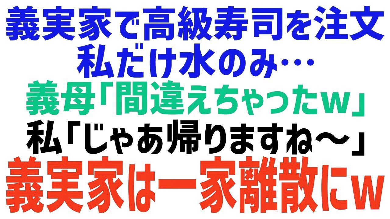 【スカッとする話】義実家で高級寿司の出前を注文。義母「嫁の分はないわよw」夫「仕方ないよなw?」私「じゃあ帰るね~♪」その後、義実家は…w【修羅場】【朗読】