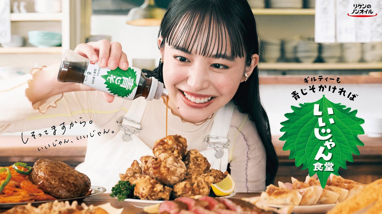 本CMでは、定食屋さんでギルティーな料理を食べる主人公を井桁弘恵が演じる。『リケンのノンオイル 青じそ』をかけて、ギルティーさも罪悪感もまとめてさっぱりパクパク。「とんかつ篇/カルボナーラ篇」ともに、すべてを肯定するような『いいじゃんソング』とともに井桁弘恵が気持ちの良い食べっぷりを披露する。