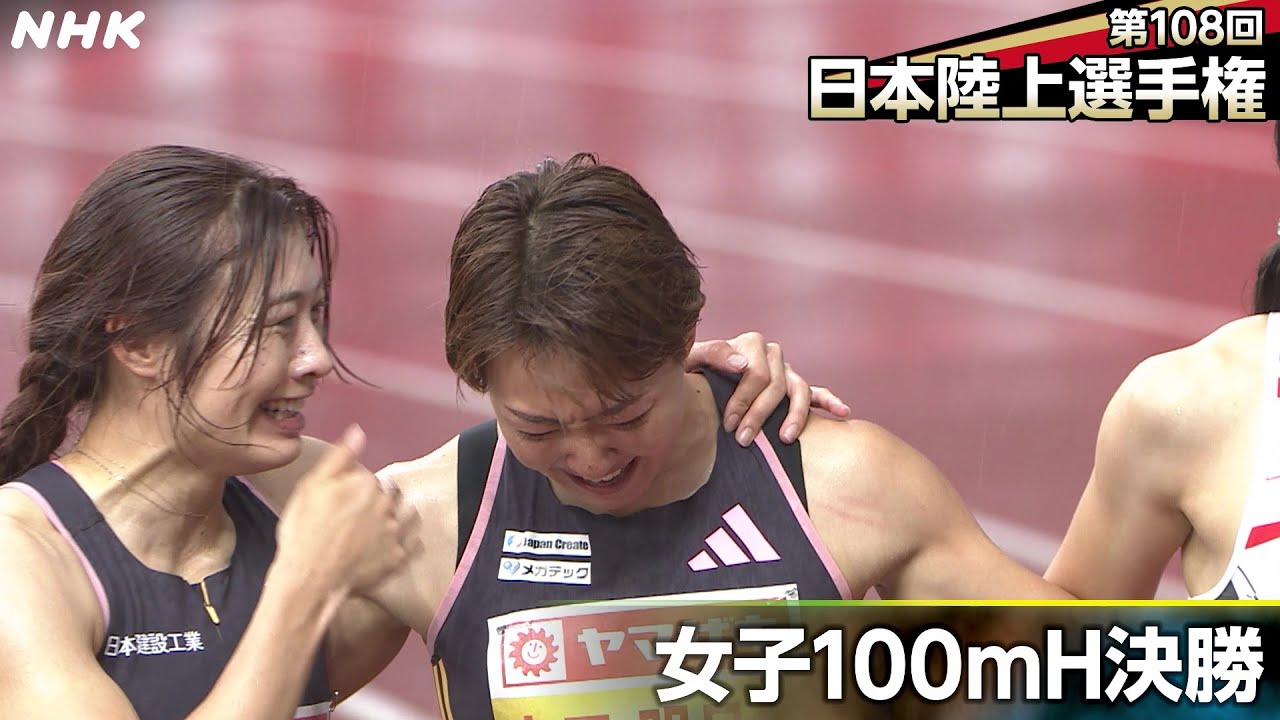 希に見る代表争い 福部真子選手が優勝で内定 寺田明日香選手の目に涙|第108回日本陸上選手権 女子100mハードル決勝|NHK