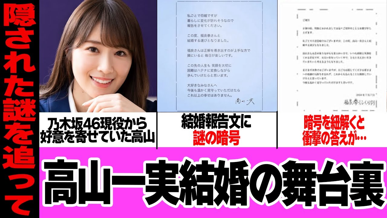 高山一実の結婚で隠された謎の暗号の”答え”に衝撃…!!ふくらPと結婚発表した元乃木坂46メンバーが結婚発表文に隠した謎の暗号、兼ねてから交際が噂されていた2人の衝撃告白で…【芸能】