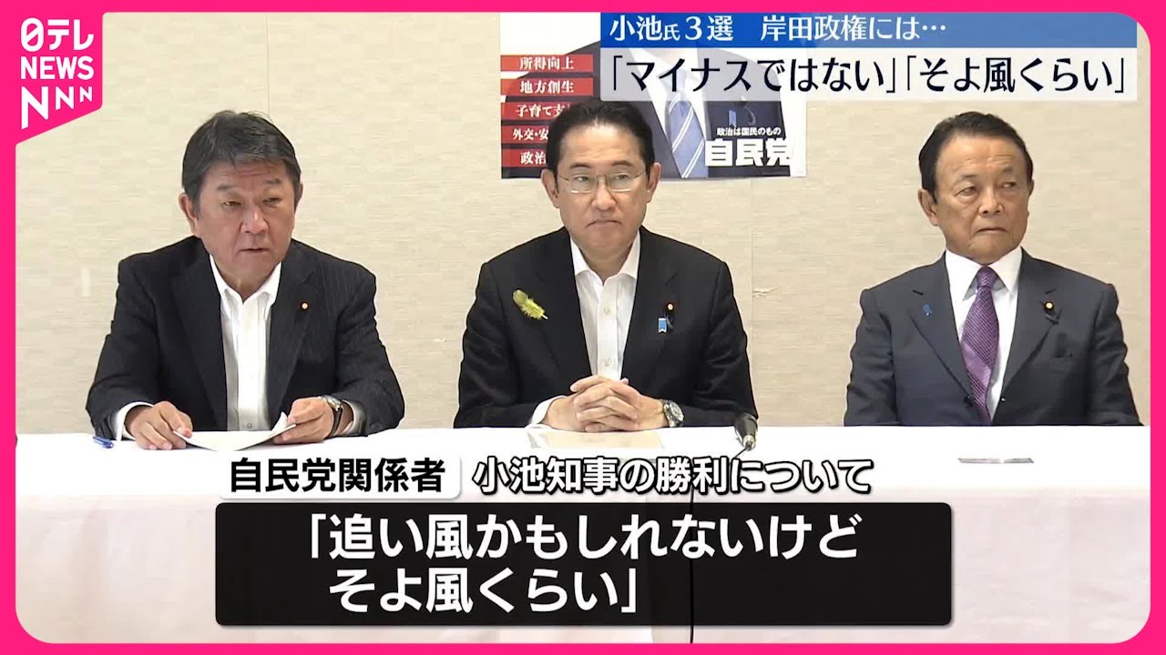 自民党が前面に出たわけではないので「小池知事の勝利」が、そのまま「自民党の勝利」、さらには「岸田政権への追い風」には、ならないという見方が多いです。