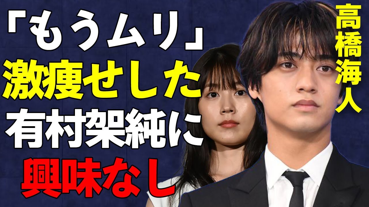 [音楽] 皆さんこんにちは何の音沙汰もないところ を見ると2人は破局してしまったの でしょうか昨年突如キングアンプリンスの 高橋カトさんと女優の有村克さんの交際が 報じられてから数ヶ月ネット上で情報を 集めてみると破局したという見立てが たくさんありますそれにはどうやら理由が あるようです是非最後までご覧いただき コメントいただけると嬉しいです2024 年7月日配信のウブ版のある週刊誌が昨年 末に交際報道のあったキングアプリンスの 高橋カトさんと女優の有村克さん関して この春破局した可能性があるとの情報を キャッチしたというのです記事によると次 のような説明がありました高橋さんと有村 さんは20年放送のドラマ姉ちゃんの恋人 での共演をきっかけに交際をスタートさせ たと言われていますその後高橋カトさんは 2022年の冬頃から有村克さんの マンションの別の部屋に引っ越し1つ屋根 の元で愛を育んでいたというのです双方の 事務所はドラマで共演して以来仲良くさせ ていただいていると報道を否定せず世間を 大いに賑わせていましたしかし次に価値観 のずれが生じ始めてきたというのです すなわち30歳を超えて結婚を意識してい た有村克さんとまだまだアイドルとして 頑張りたい高橋街さんとの間で結婚感の 違いがまず生じましたその後話し合いの末 約3年に及ぶ交際が終わったとその記事は 伝えているのです今期ドラマにおいて有村 克さんと言えば現在スノーマンのメグロ レンさんが主演を務めるドラマ海の始まり に出演してますその番線などで大の場に 見せる有村かさんの姿が以前より痩せて いるように見えたことでファンから体調を 心配する声が上がっていましたしかし7月 5日自身のInstagramで日々作品 に向き合っていく中で消費カロリーが多い もので食事は自分のペースで取っているの で心配しないでねごめんね気にかけてくれ てありがとうございますと綴りファンを アンドさせているとのことです 一方で高橋カトさんとの破局報道が出た ことでネット上では痩せたのは失恋の影響 ではといった憶測も飛び交いましたさらに キングアドプリンスファンの間でも高橋 カイトさんのある異変が話題になっている というの ですネットニュースラボ7月6日に日本 テレビで放送された音楽特番THE MUSICDAY2024にキングア プリンスが出演し新曲ハーフムーンを熱証 しましたその際高橋カトさんはソロパート のすぐに会いたい今すぐ抱きたいという 歌詞の部分をすぐに会いたいと2回続けて 歌っていたというのですさらにその後も 込み上げるように心が騒ぐのところを 咲き誇るように心が騒ぐと歌うなどいくつ かの歌詞を間違えていましたするとキング アンプリンスファンの間ではカトがこんな 歌詞の間違え方するなんて珍しいどうした んだろう会いたくて会いたくて先誇るほど 心が騒ぐようなことがあったのかななどと 歌詞になぞらえて高橋街さんに何かあった のではないかと心配する声が上がってい ましたそれだけに今回有村かさんとの破局 報道が出たことでまさか失恋を引きずっ たりしてないよねなどと憶測も上がって いる状況です有村さんが痩せたことや高橋 さんの貸間違いは偶然かもしれません しかし破局報道が実際にあっただけに プライベートと結びつけてしまう一部 ファンもいるようです猛暑日となった7月 上旬のある日長袖のニットに身を包み都内 のカフェでドラマのロケに望んでいたのは 里村克さんです7月1日に始まった目黒 レンさん主演の月海の始まりの撮影を行っ ていました先ほども触れましたが実際に 場所で激痩せが確認されたのでしょうか 初回の番線のため7月1日に目覚まし テレビや目覚ましエノンストップといった フジテレビの番組に生出演した際にそれは 確認できたとのことです痩せたお顔に元気 がないような痩せすぎていて別人に見える などの声がx上で多数上がっていました また放送されたドラマの初回を見た視聴者 の多くも同様の印象を抱いていたようです 有村克さんは2018年12月に配信され たWebメディアシネマデのインタビュー で理想の結婚について尋ねられこう答えて いました子供は授かることができるので あれば絶対に欲しいですねそう考えると 理想の年齢は30歳くらいになるのかなと 話すなど度々メディアで30歳で結婚し たいと語っていたことは確認されています 有村克さんは今年の2月13日で31歳を 迎えました以前テレビ番組で親高校のため にも両親に孫の顔は見せたいなって思うと 語っており高橋街さんとの結婚は真剣に 考えていたことがここから分かります一方 で高橋カトさんは25歳の現役アイドル キングアンドプリンスが2023年5月に 2人体制になってから日が浅いこともあり なかなか結婚という決断には踏み切れ なかったのでしょうもも熱愛発覚直後には 現場でスタッフに謝罪し激しく気落ちして いたそうですアイドルとしての活動と自分 の幸せとの狭で迷いがあったのでしょう 高橋カトさんは人生のピークを30代