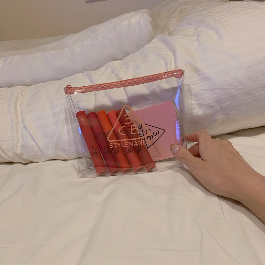3CE SMOOTHING LIP TINT& 3CE CLEAR TRAPEZE POUCH 最近、 濃い赤でお気に入りの #VINTAGE BRICK 使ってます👄 好きな色、 @stylenanda_japan #hikaru_yokota#横田ひかるHikaru YokotaYokota Hikaru